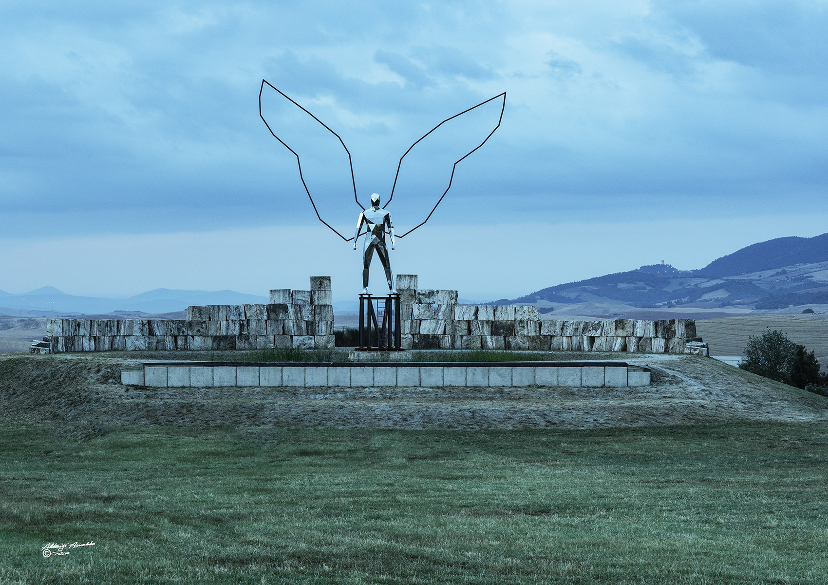 LAJATICO — Andrea Bocelli ha scelto: sarà Gabriel, uomo alato alto 15 metri realizzato interamente in acciaio da Daniele Basso, artista biellese, l'opera che farà da cornice all'edizione 2019 del Teatro del Silenzio, in programma le sere del 25 e 27 luglio nella suggestiva cornice delle colline di Lajatico. _________________ Pentax KP Pentax 16-50-50 1,4
