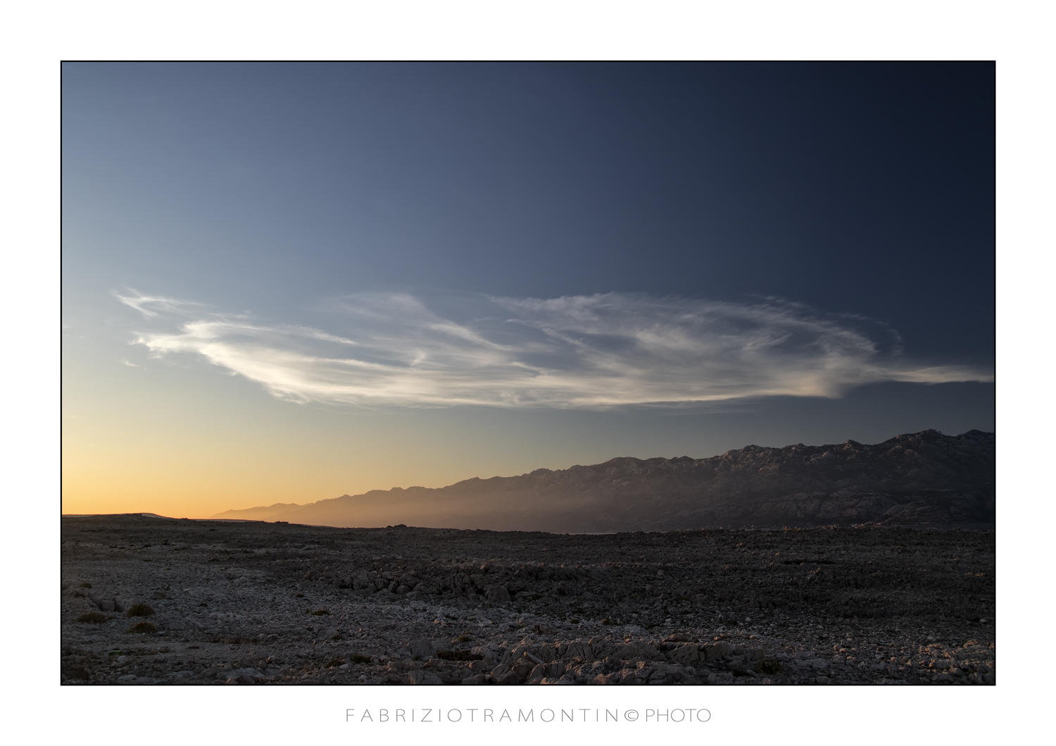 La sfumatura cromatica della "fine del giorno" e il contrasto tra il brullo territorio e il soffice sbuffo di nuvole, crea una immagine gradevole e ben equilibrata.