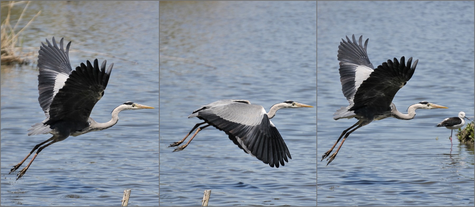 Molto bella questa sequenza dello stacco del cenerino, buonissima esposizione, nitidezza e lettura del piumaggio...ci sta anche la presenza del cavaliere ad osservare il passaggio in volo dell'airone...bravo.