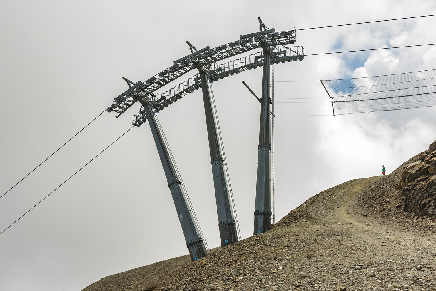 Ben vista Claudia, il colpo d'occhio tra le gigantesche travi della funivia e le piccole figure creano una scena interessante nelle proporzioni.