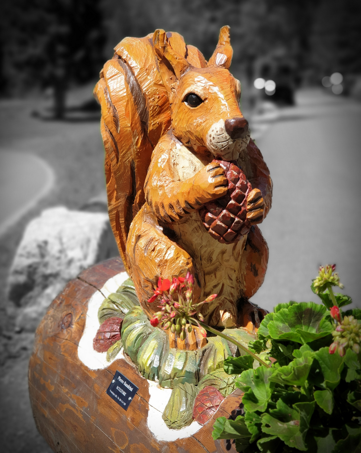 Ci sono residui della desaturazione sui contorni dei fiori e dello scoiattolo. Ci sono pure zone che riflettono il sole.