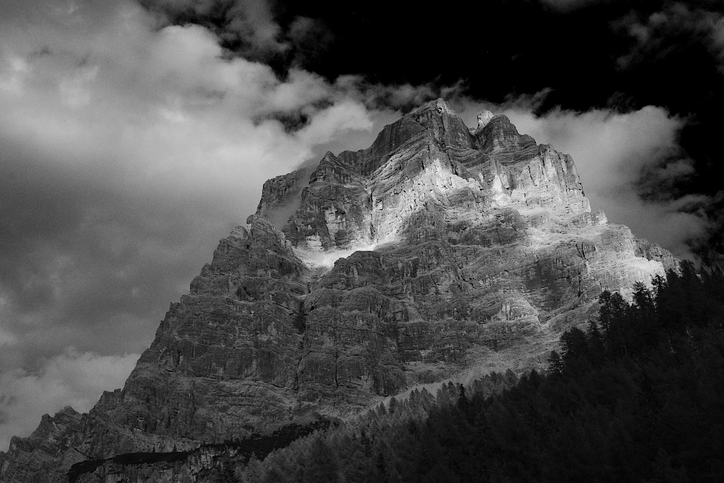 Molto interessante la lama di luce a tagliare questa montagna cosi a picco.