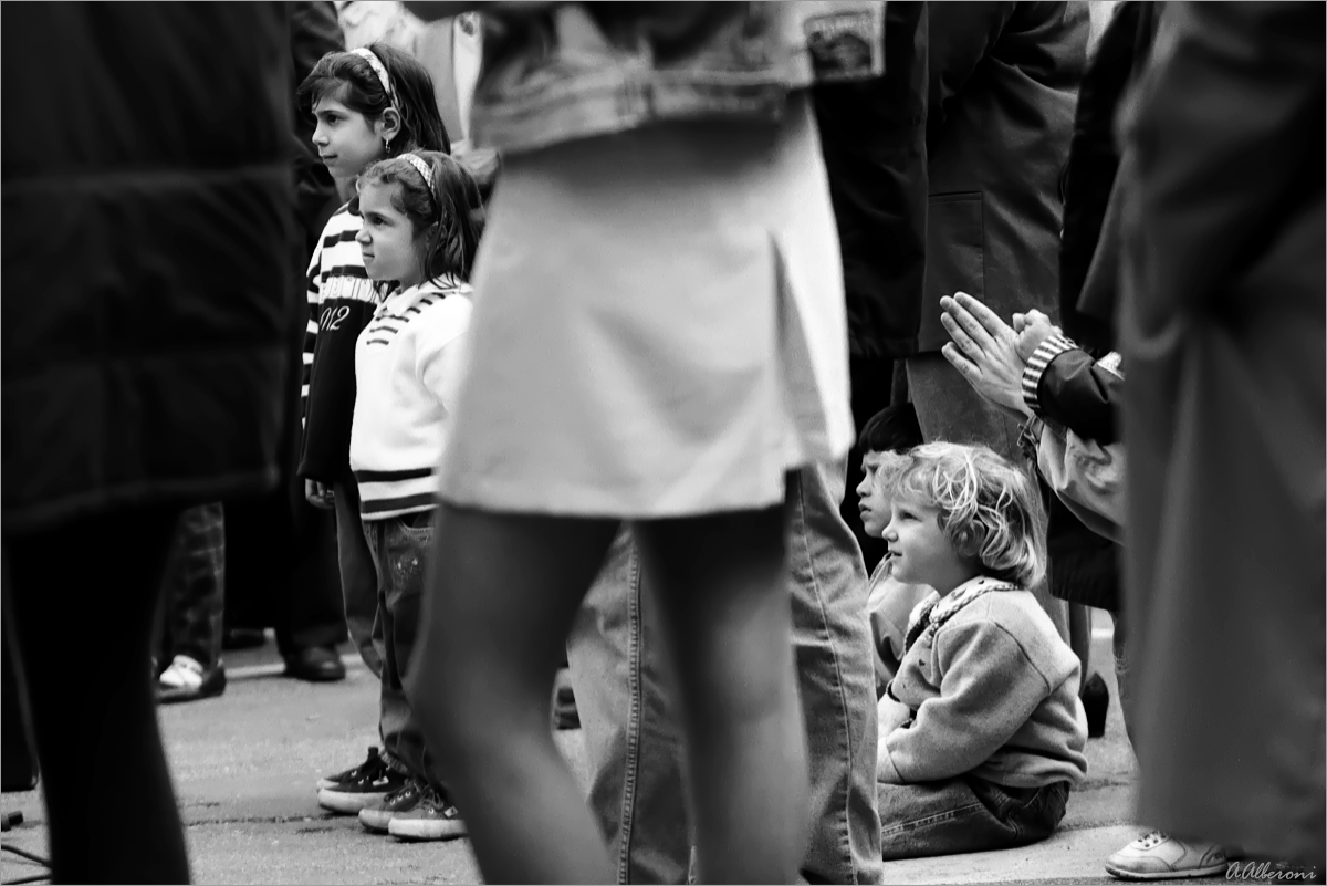 Avrei potuto chiedere alle persone di spostarsi, ma ho scelto di mantenere i bambini tra la folla isolandoli nei loro frame e con la diagonale che si crea dalla loro posizione, fissi verso l'evento. _________________ Non mi interessa con cosa si fotografa e come si arriva al risultato finale, mi interessa solo il risultato finale. |