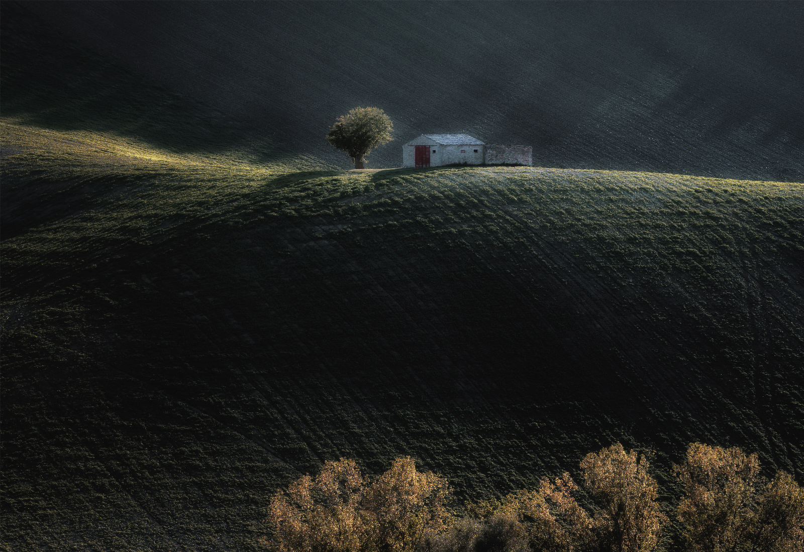 Il soggetto è un gran classico, mentre molto particolare appare il trattamento dell'immagine, a enfatizzare i solchi nel terreno e i giochi di luce.