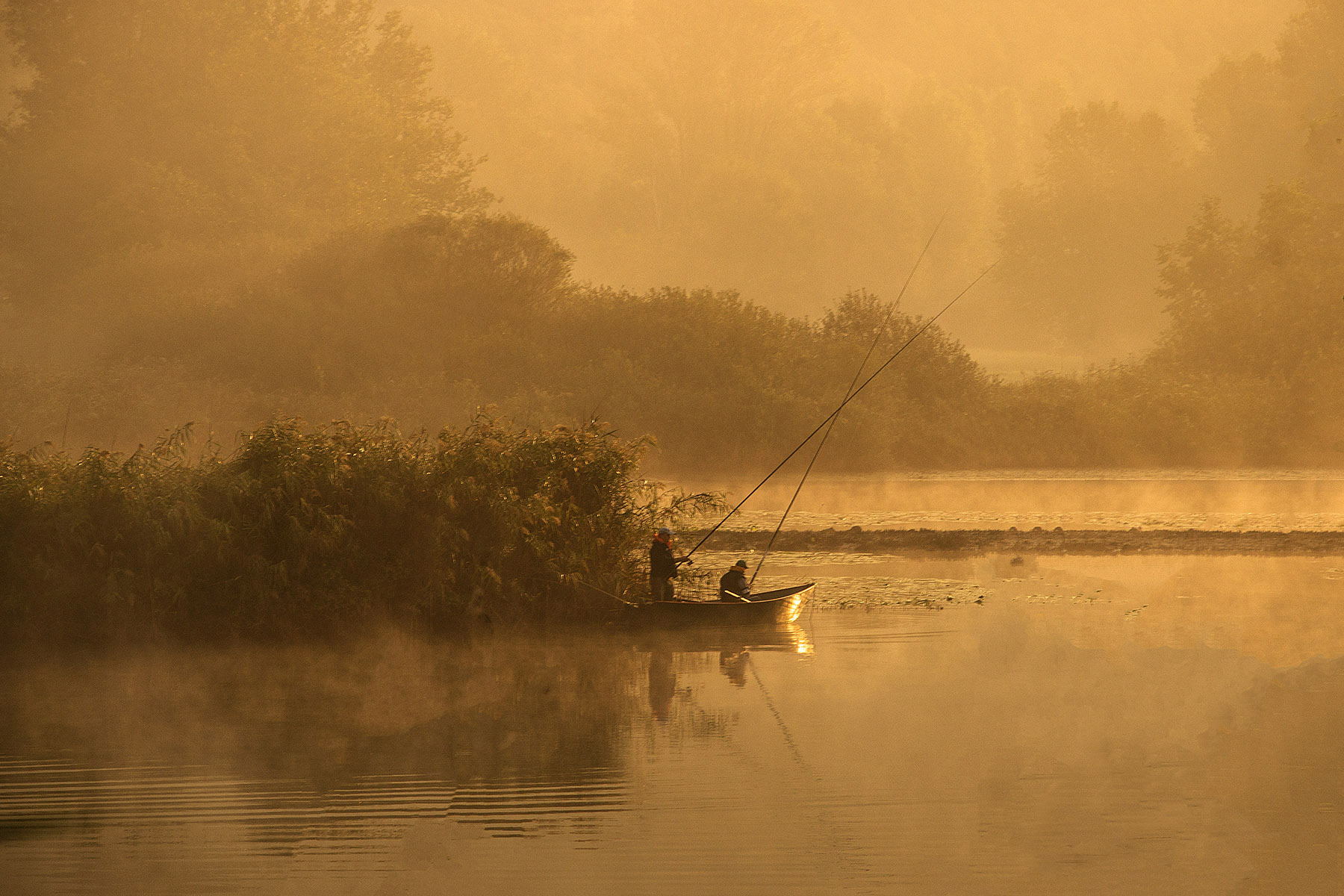 Quel soffio di luce sulla barchetta e le 2 canne che si incrociano fanno la differenza ... mi piace!