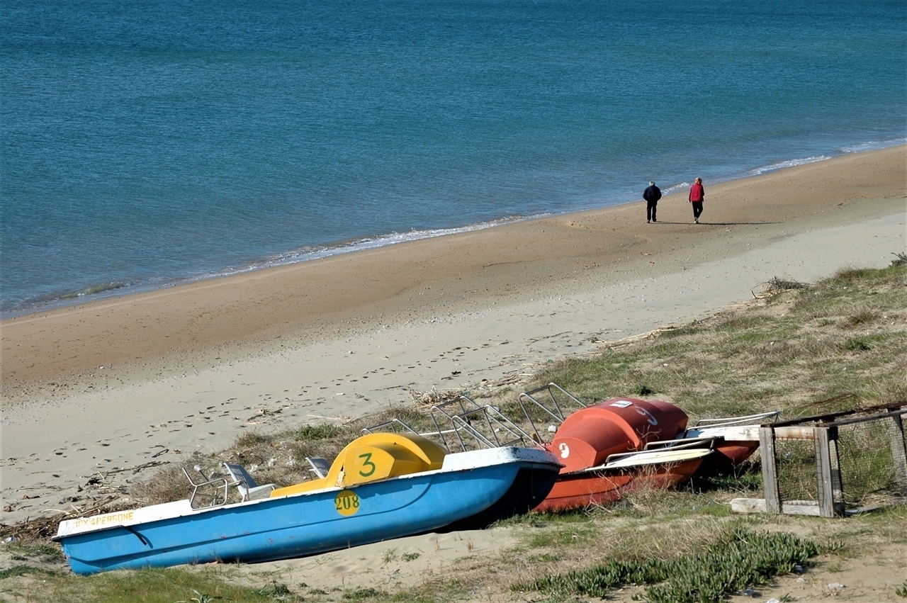 Bella composizione e ottimi i colori, le due persone sole sulla spiaggia, e ben vestite, rendono perfettamente l' idea dell' autunno.