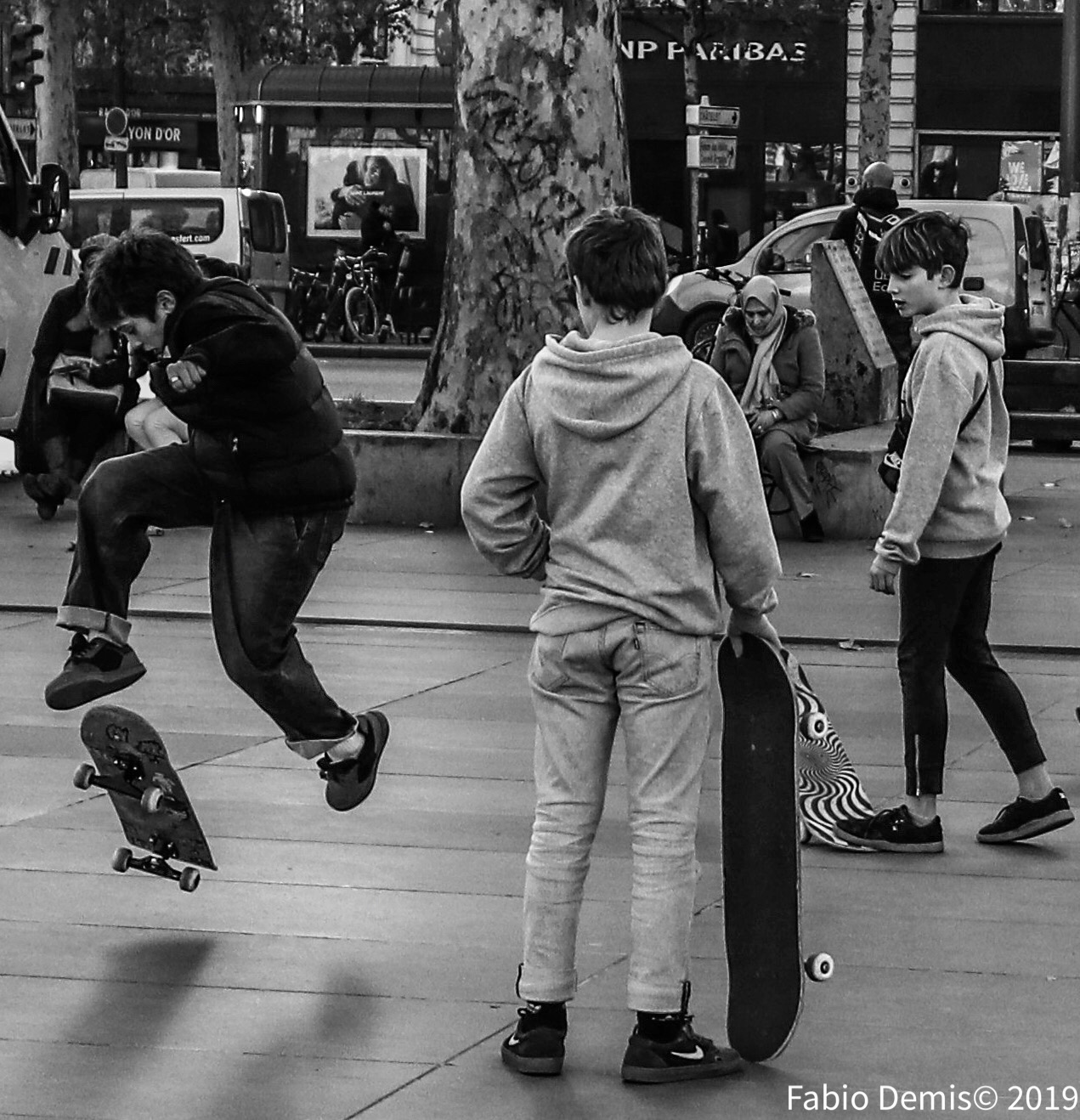 Grazie a tutti per i commenti. È si un crop, obbligato in quanto vi erano altri elementi che disturbavano la foto...purtroppo lo so che una street non si rovina ma sono stato costretto. Avrei potuto aspettare un altro salto, ma mi insegnate che la street si compone di attimi irripetibili e che è meglio uno scatto non perfetto di uno non fatto. Ma sono onorato...davvero, grazie mille.