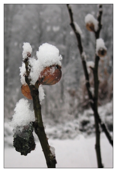 Mi sa che è colpa nostra... è una piccola pianta cresciuta nel boschetto davanti a casa, nessuno pensava che avesse già dato dei frutti... c'è voluta la nevicata di ieri per accorgersi che c'erano i fichi...