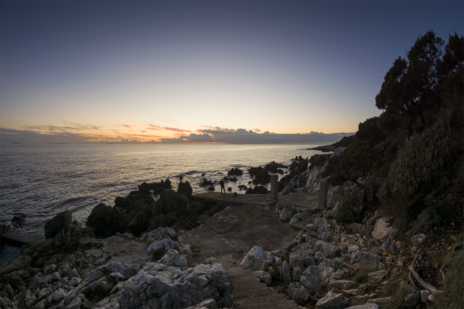 Il piccolo fotografo solitario a catturare l'ultima luce della sera, immagine che restituisce con buona fedeltà cromatica e di luce l'atmosfera del luogo.