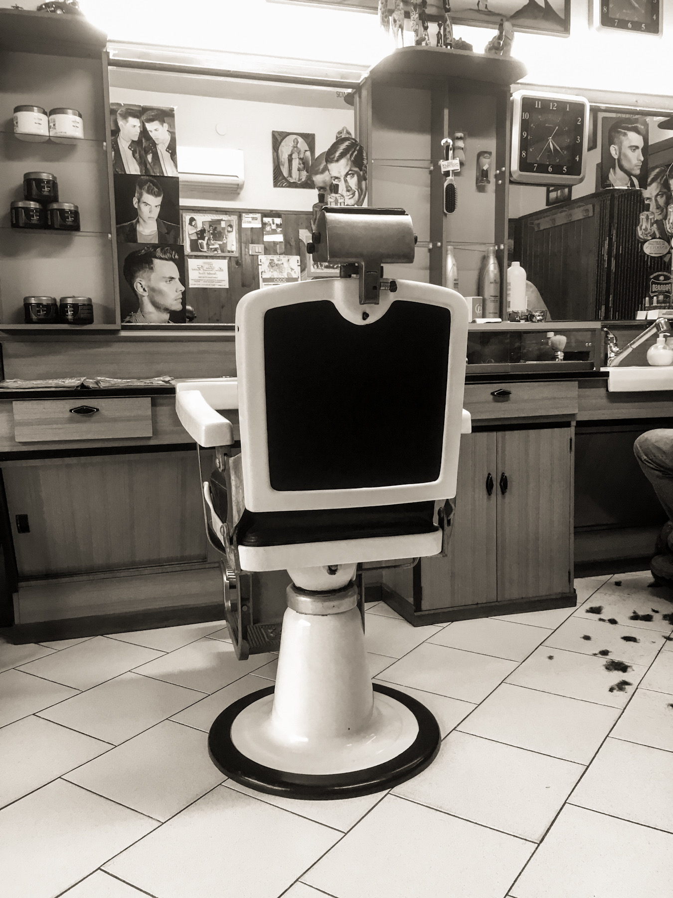 Sarebbe stato interessante vedere l'immagine riflessa sullo specchio, del cliente seduto sull'altra poltrona.