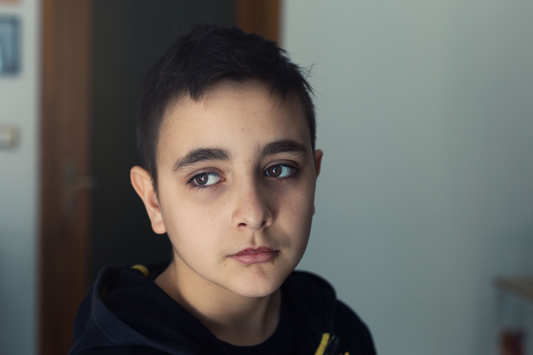 Un ritratto che esalta la tranquilla quotidianità in cui il ragazzino vive. La centralità del soggetto non disturba anche se, giusto come prova, sarei tentata di eliminare il pezzo di parete chiara a sin. Ciao Ciao