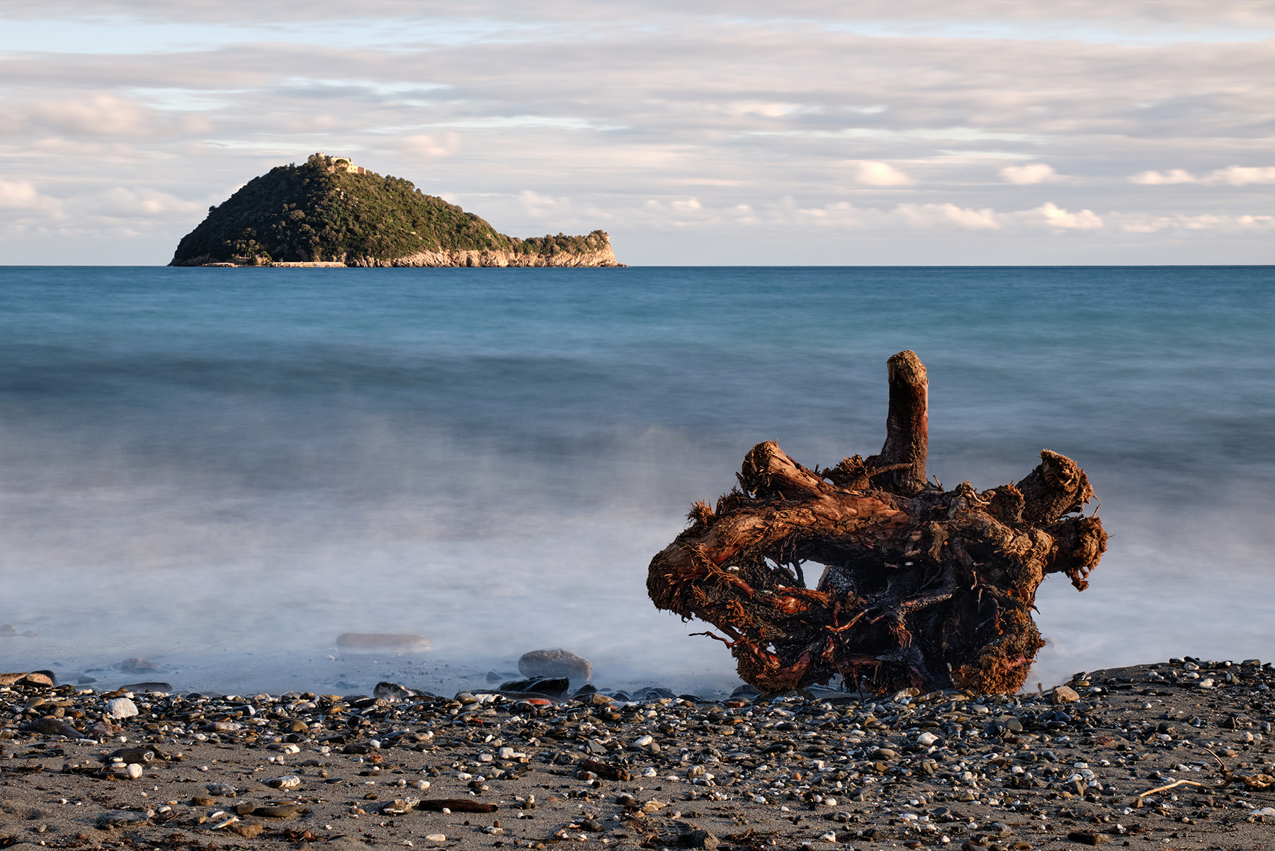Aggiungo che è la fusione di due immagini per ottenere una maggiore profondità di campo, che sarebbe stata più complessa senza la setosità del mare.