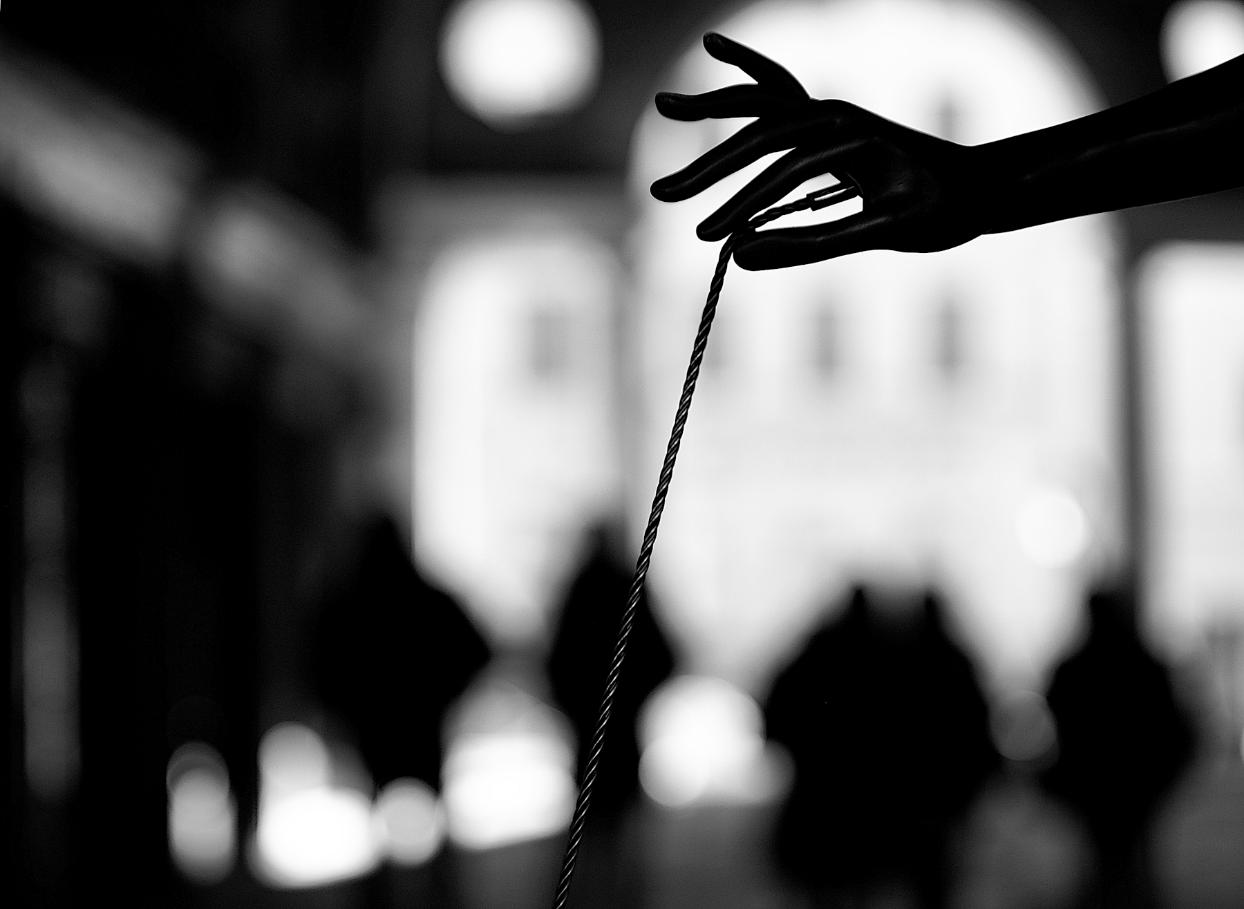 Ecco chi tira il filo del destino... una misteriosa mano pronta a cambiare le sorti delle vite delle indefinite figure che avanzano, o si allontanano chissà. Molto suggestiva e ben realizzata. mi piace Ciao