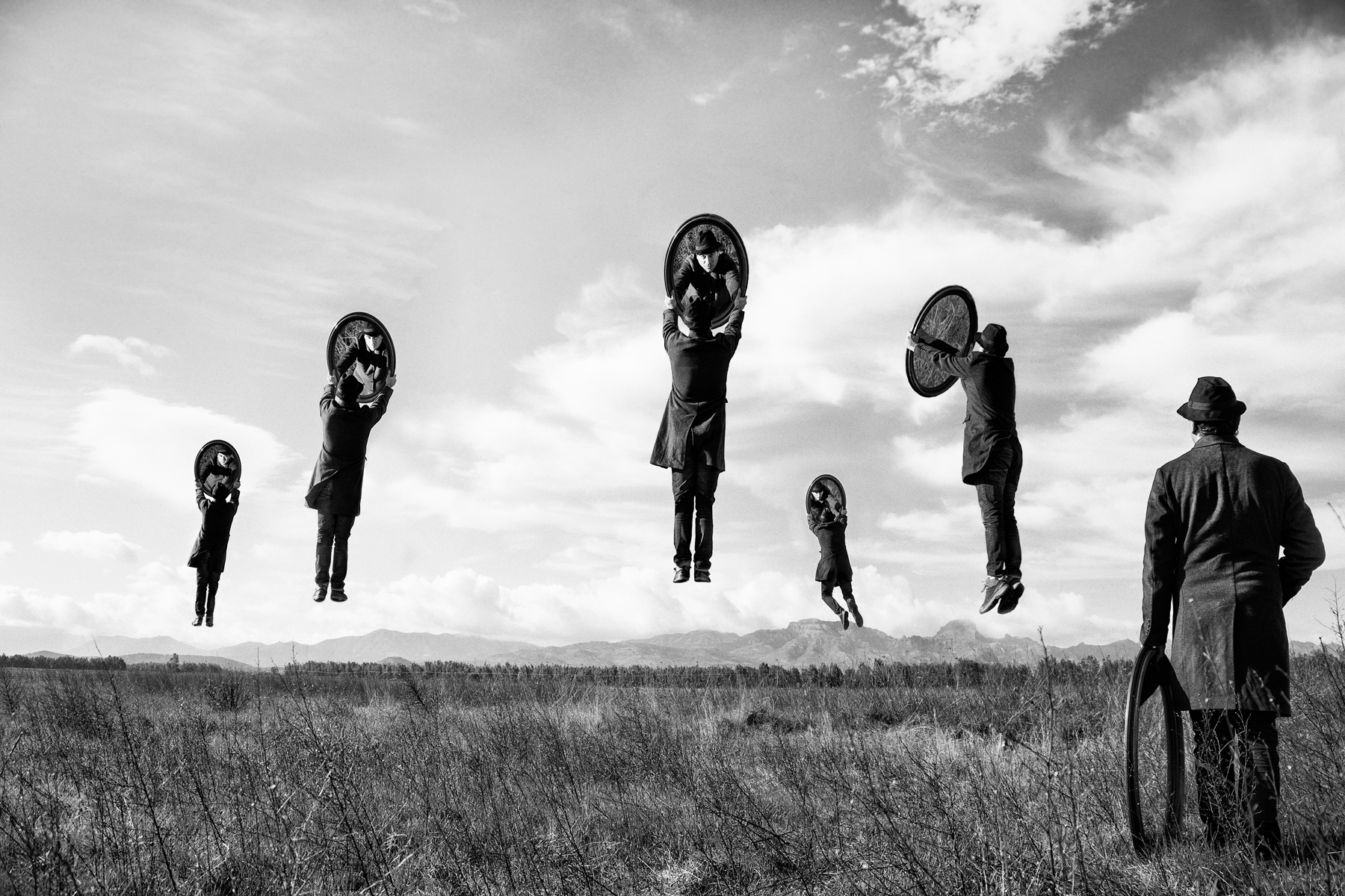 Elegante uomo saltatore volante, complimenti davvero,per me una delle tu realizzazioni più belle. Una foto grandiosa.. per idea e realizzazione.. c'è tutto... la voglia di divertirsi e un impegno fuori dal comune per una realizzazione che comprende scelta del luogo, costumi e accessori,attività fisica, 10gg di prognosi, uno studio impegnativo per le pose e un gran lavoro di post. E il tutto deve necessariamente partire da una grande idea, dal voler veicolare un messaggio o una storia dando solo degli input che solleticano la mente di ognuno come tuo solito. Qui però ti sei superato..perche hai amalgamato concetti ed elementi molto simbolici e significativi: lo specchio,l'io riflesso, il volo.. è un viaggio dentro se stessi..alla scoperta di chi si è veramente nel momento in cui ci si lascia andare e si vola,si sogna.. ma è anche una dimostrazione della paura di farlo perdendo il controllo di se stessi, del bisogno di "vedere" cio che gli altri vedono di noi. E c'è quella vita sospesa nel non sapere cosa fare,se lanciarsi o star ad aspettare di fare la scelta giusta.. soli con i tanti se stessi..