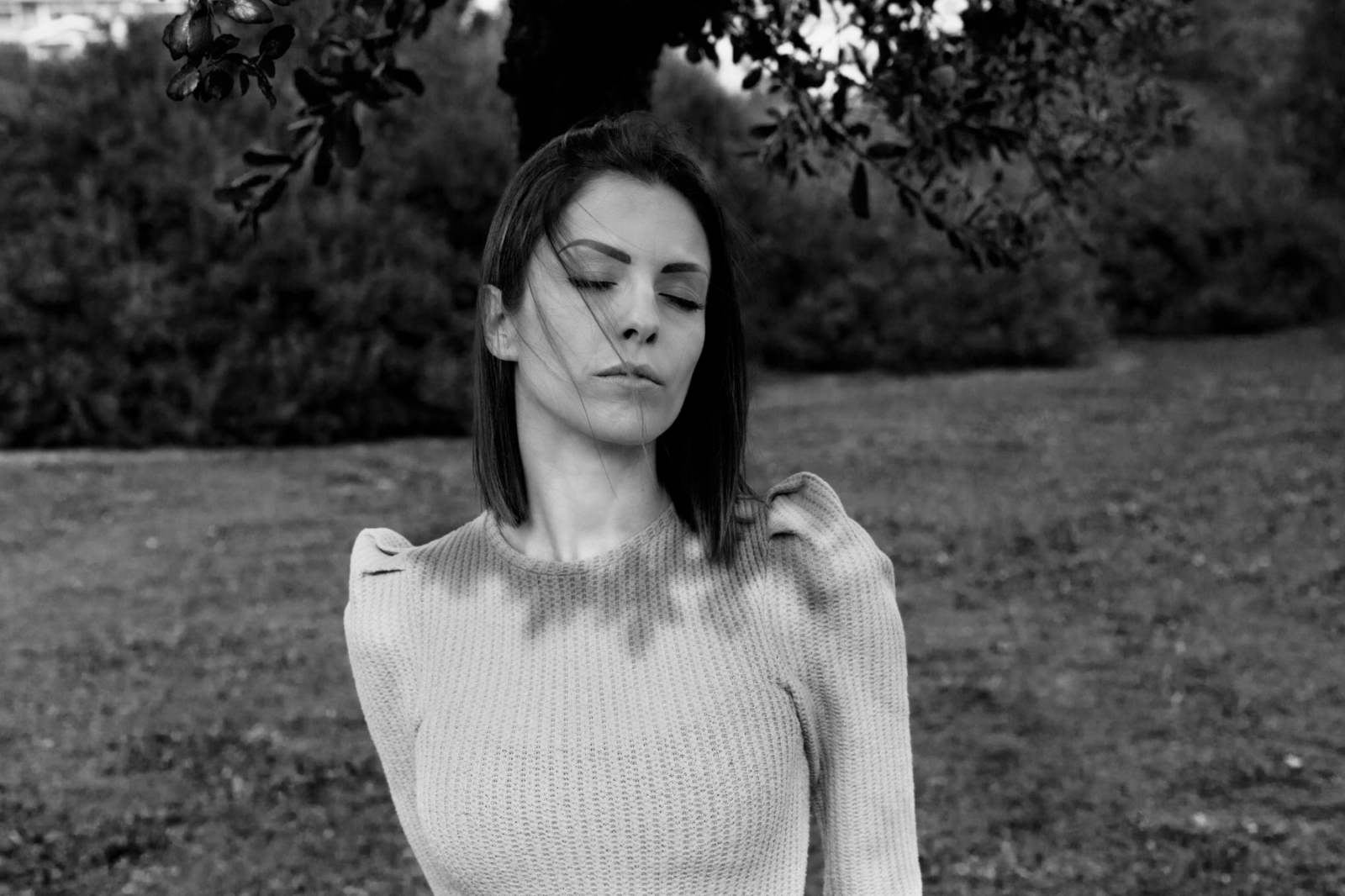 Ma se non erro sul collo del maglione c'è l'ombra dei rami, che crea una sorta di collana... potrei sbagliarmi .. potrebbe essere il colore del maglione ma la sensazione che mi da è quella di richiamare i rami e la cosa mi piace molto.