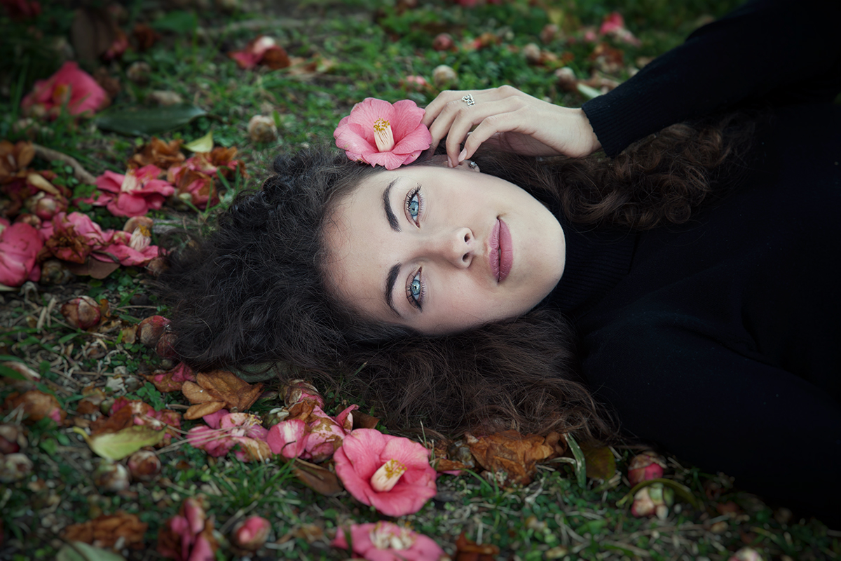 Cromie dolci che si richiamano tra i petali e le sue morbide labbra. Occhi azzurri che bucano lo schermo e che sapientemente attirano lo sguardo al centro del frame. . Ben.composta ed efficace quindi,femminile e dolce lei nella sua delicata bellezza. Bravissimo Ciao