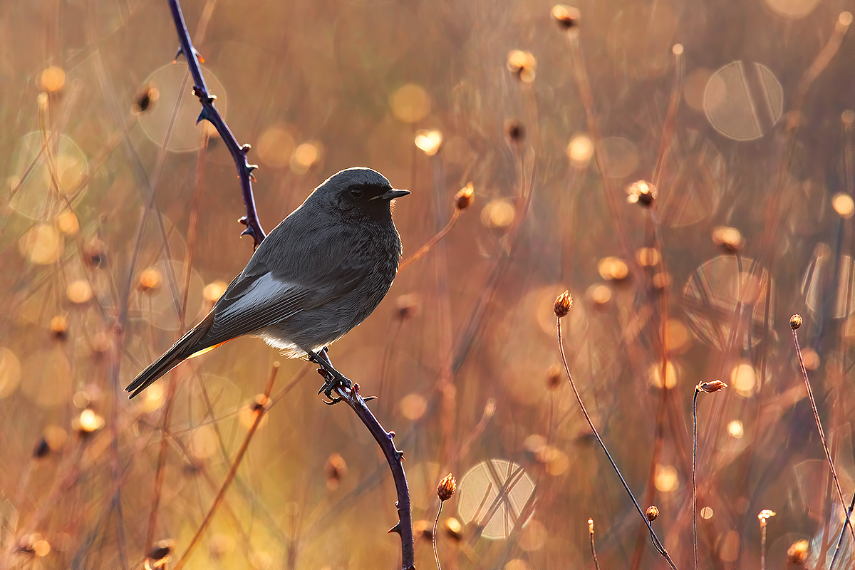 Continua la tua serie controluce con un'altra bella foto. I bokeh in effetti ricorda una lente del genere, bellissimo effetto insieme all'ambientazione fanno un'ottimo sfondo al Codirosso.