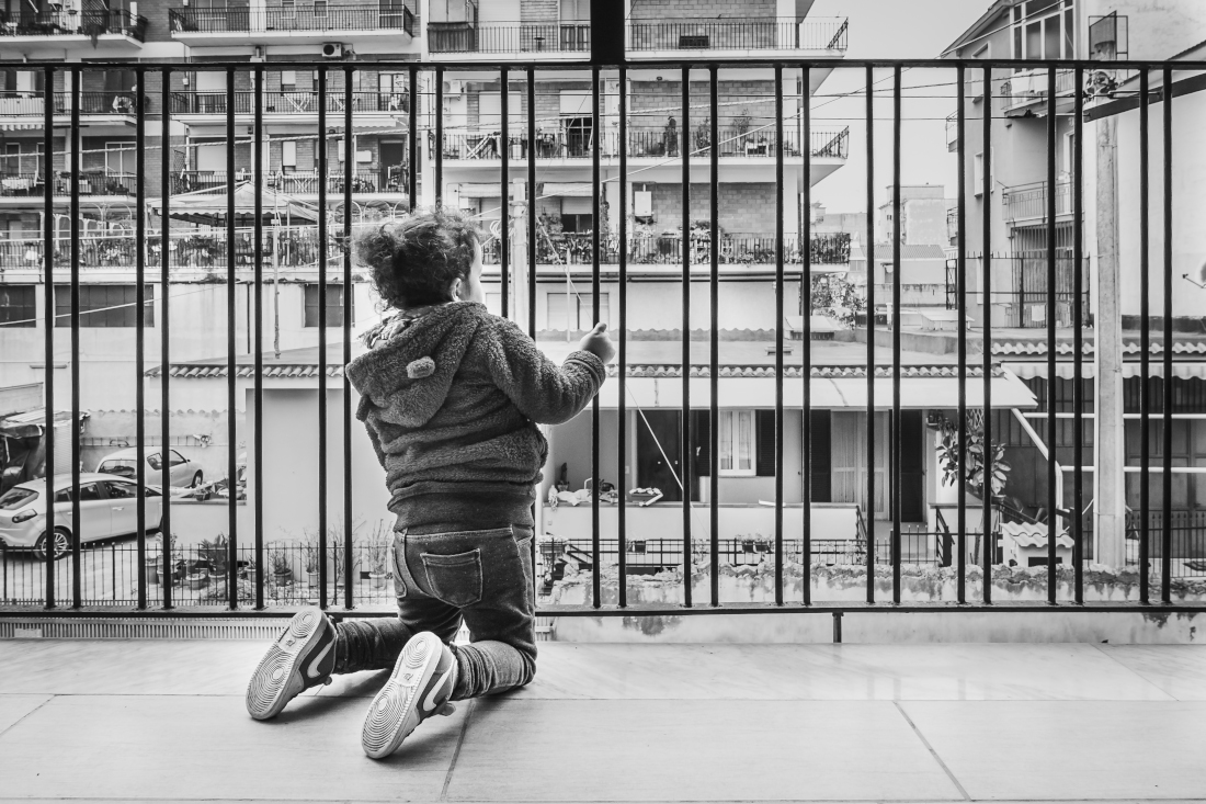Fotograficamente proverei a tagliare lo spazio aperto sopra le ringhiere per enfatizzare l'effetto "gabbia"