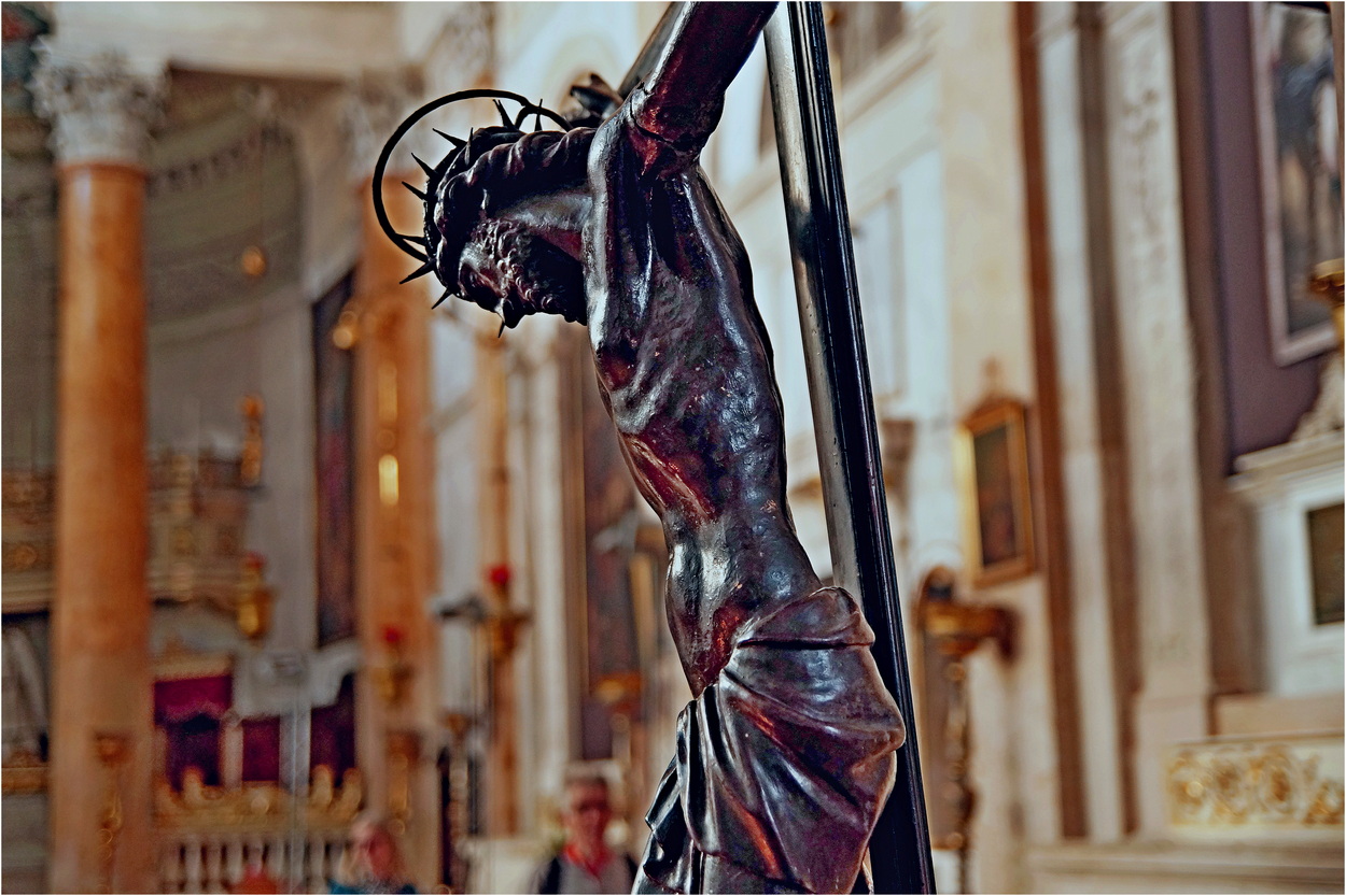 Vedo aloni sia neri che bianchi (dovuti alla post-produzione). Mi piace il dettaglio sul soggetto, avrei preferito meno spazio a destra della croce. Ciao