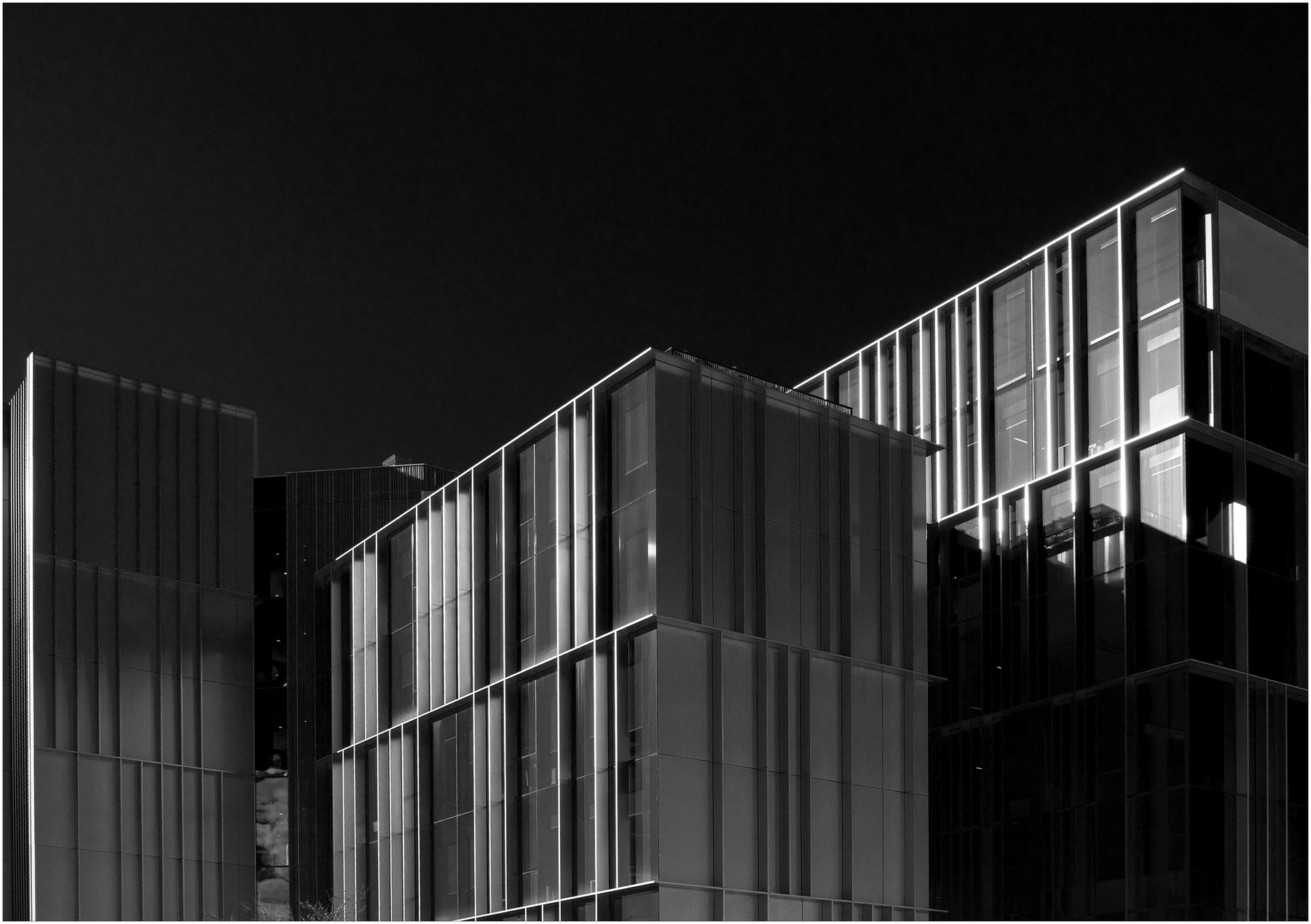 Mi piace la rappresentazione e la conversione in BN con un' ottima gestione di luci e ombre...un po meno l'apertura a ventaglio, probabilmente data dalla focale a distanza ridotta.
