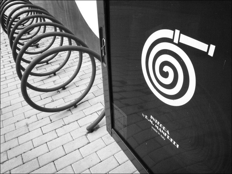 Questo scatto è nato dopo qualche mese di frequentazione del supermercato attiguo a questo luogo: ero interessato dalla spirale rossa che serve per parcheggiare le biciclette, ma non riuscivo a trovare qualcos'altro di innescante.