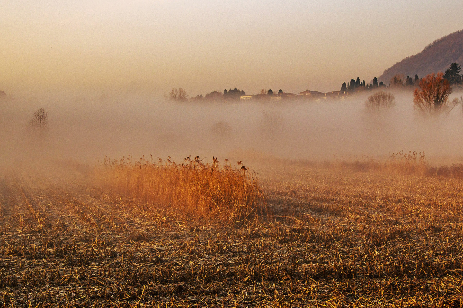 Una nebbia quasi pennellata, ottimi i colori caldi.