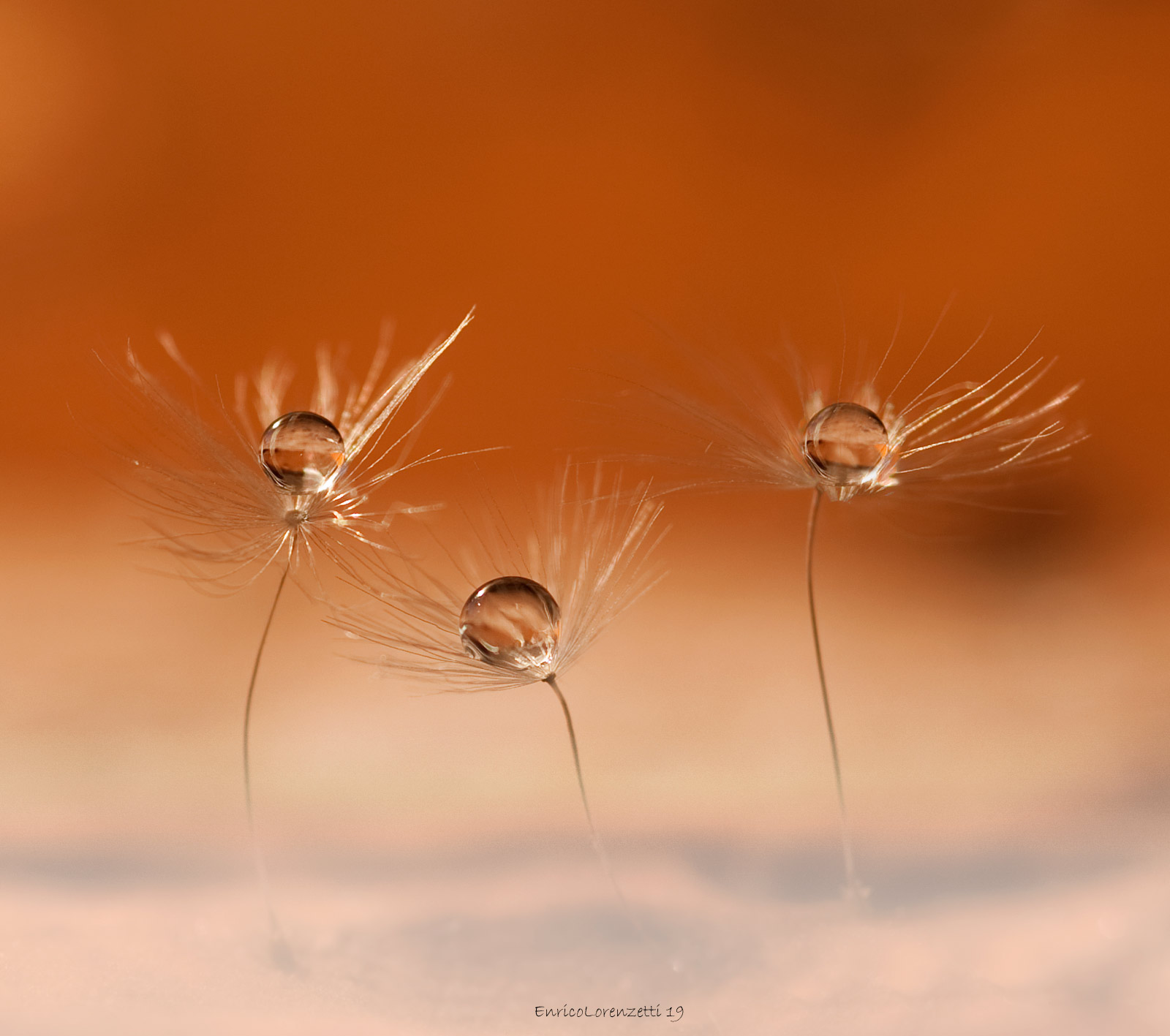 | Evanescenti sfumature cromatiche evidenziano la “danza” dei soffioni con le gocce. Immagine delicatamente bella |