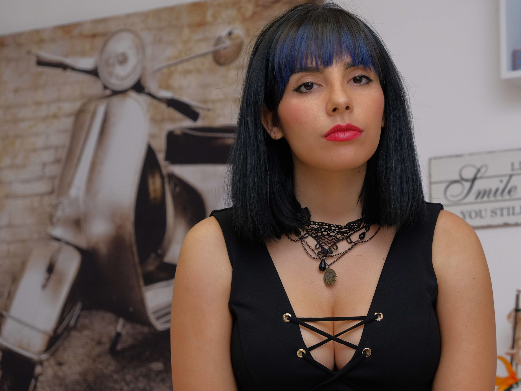 La modella sembra molto seria e non proprio a suo agio..forse avrei dado un filino d'aria in meno alla testa.. anche un piccolo taglio sulla parte Dx da togliere l'oggetto di disturbo in alto.. Ciao
