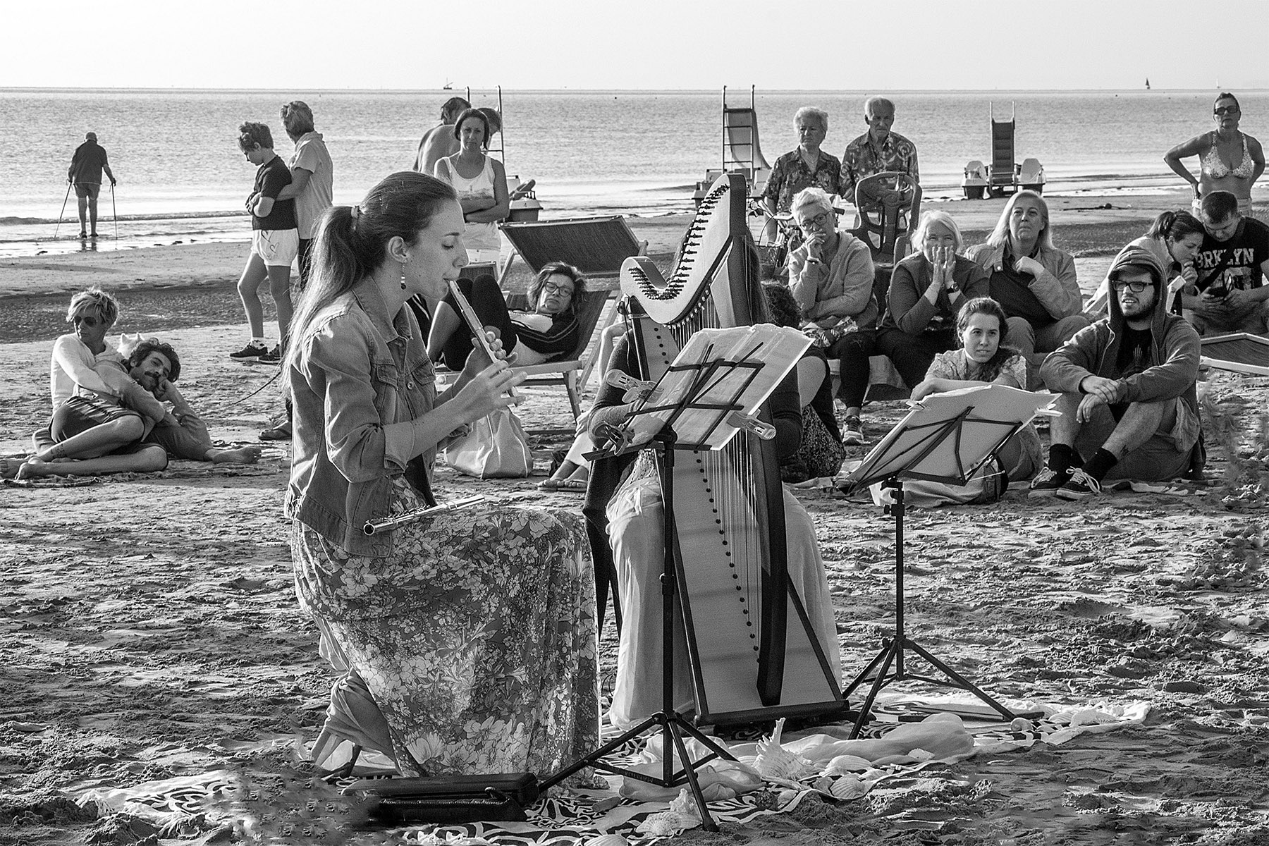 Foto che andava fatta camera a terra, così da non spalmare sullo stesso piano il soggetto ed il nutrito contesto umano, permettere di ergersi alla flautista e abbassare, minimizzandola, la presenza ingombrante del pubblico.