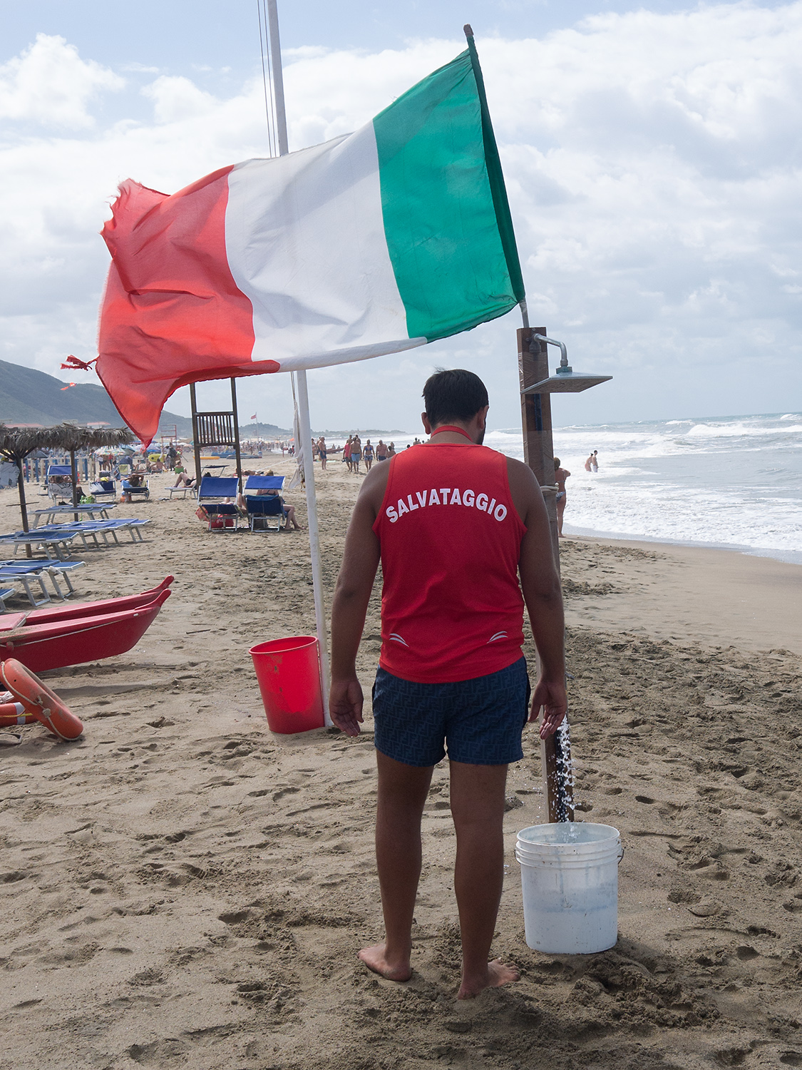 Bella ed emblematica immagine.La grande bandiera che sventola bassa,la spiaggia disordinatamente attrezzata,la posa di resa del bagnino e quella scritta:tutto ci porta al dramma del presente ed alle difficoltà di tutti i settori.Ottimo scatto. Ciao,Sergio. _________________ Sergio Demitri https://www.flickr.com/photos/124946035@N02/ |