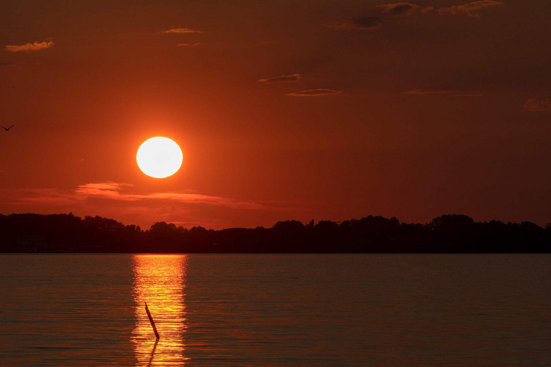 Ai catturato un ottimo tramonto ..bella questa palla infuocata che investe con la sua luce il paletto nell'acqua..il gabbiano fosse stato piu a Dx sarebbe stato il Top..Scatto molto piacevole. Ciao