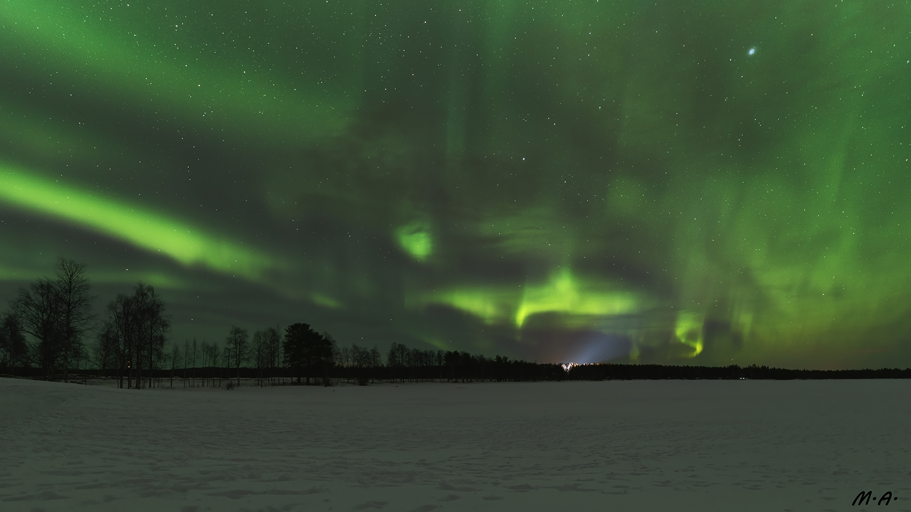 Ultima notte del mio viaggio in Lapponia lo scorso marzo, una delle aurore boreali più potenti che abbia mai visto, la si vedeva benissimo anche con gli abbaglianti accesi, poi raggiunto questo lago ghiacciato che conoscevo senza inquinamento luminoso, la visione è stata paradisiaca.