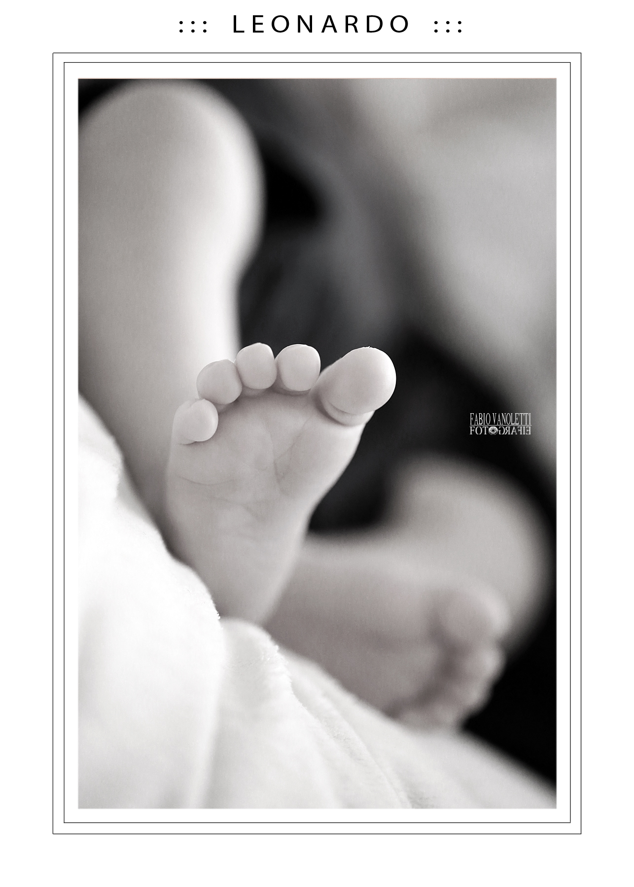 Io adoro questi dettagli... piccoli concentrati di dolcezza e tenerezza... e si sa, quando arriva un piccolo in famiglia, ci caschiamo tutti,non si può resistere! Bella la composizione,delicatissimo il bn. Complimenti benvenuto Leonardo e tanti auguri nonno Fabio  _________________