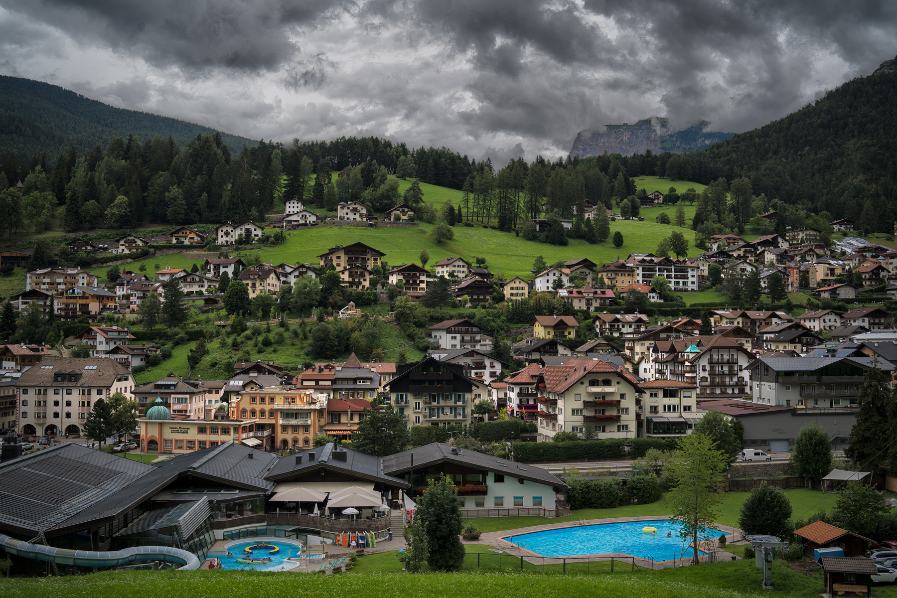 Per le piscine non saprei, io le avevo viste proprio come fondamentali in realtà. Perché la gente stava ancora in acqua. D'altro canto la città (Ortisei) non è propriamente in stile montano o rurale. Sono tutti alberghi e residence ormai.