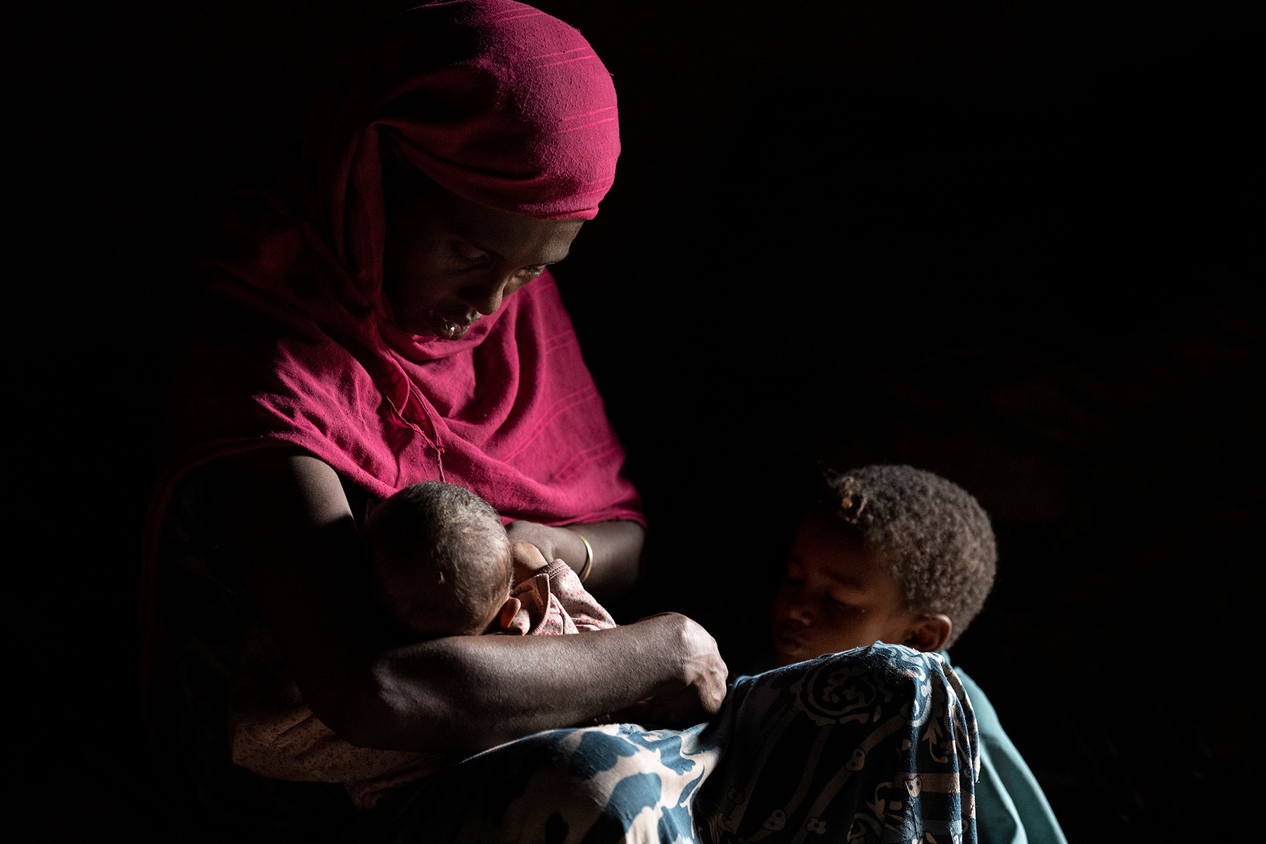 La luce con la sua carezza regala un atmosfera cosi intima e raccolta da riuscire a rendere ancora più emotivo questo momento tanto dolce quanto naturale .Il bimbo più grande,fratellino presumo, con la sua presenza discreta è un valore aggiunto.Mi piace particolarmente la tonalità del rosso e come emerge dal nero, un tocco ulteriore di intensità. Molto bella... Ciao