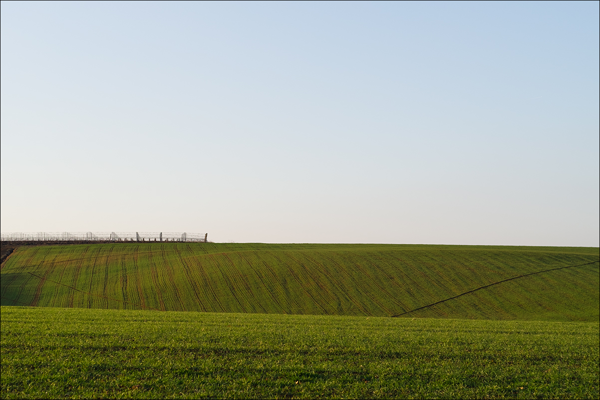 Ottima la luce che mette in risalto le linee verticali e orizzontali del campo, forse da rifilare a sinistra per eliminare quel triangolino.