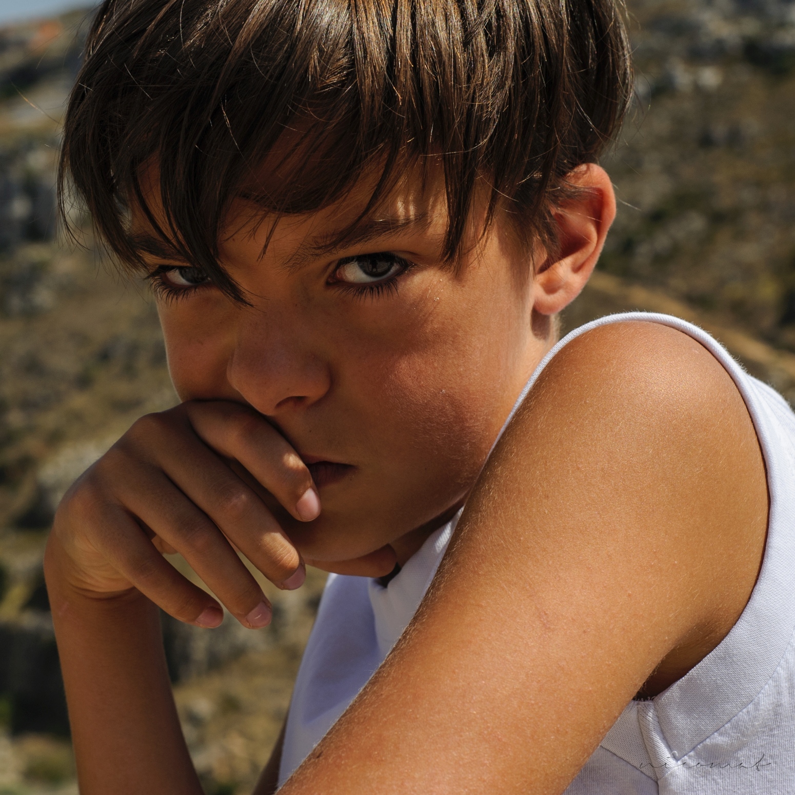 Gli occhi di Fabio mi conquistano ogni volta, catturano, sono magnetici. Una sicurezza nello sguardo che sa di piccolo adulto,un ritratto che lascia alla dolcezza dei suoi lineamenti il richiamo alla sua giovane età. Taglio ardito che mi piace, riesce a focalizzare l'attenzione sulla sua espressione.  _________________