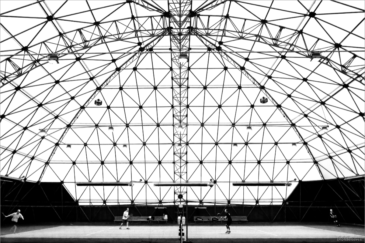Direi una struttura esagerata per un campo da tennis… Ma è molto bella e tu l’hai ripresa molto bene, davvero un’immagine accattivante