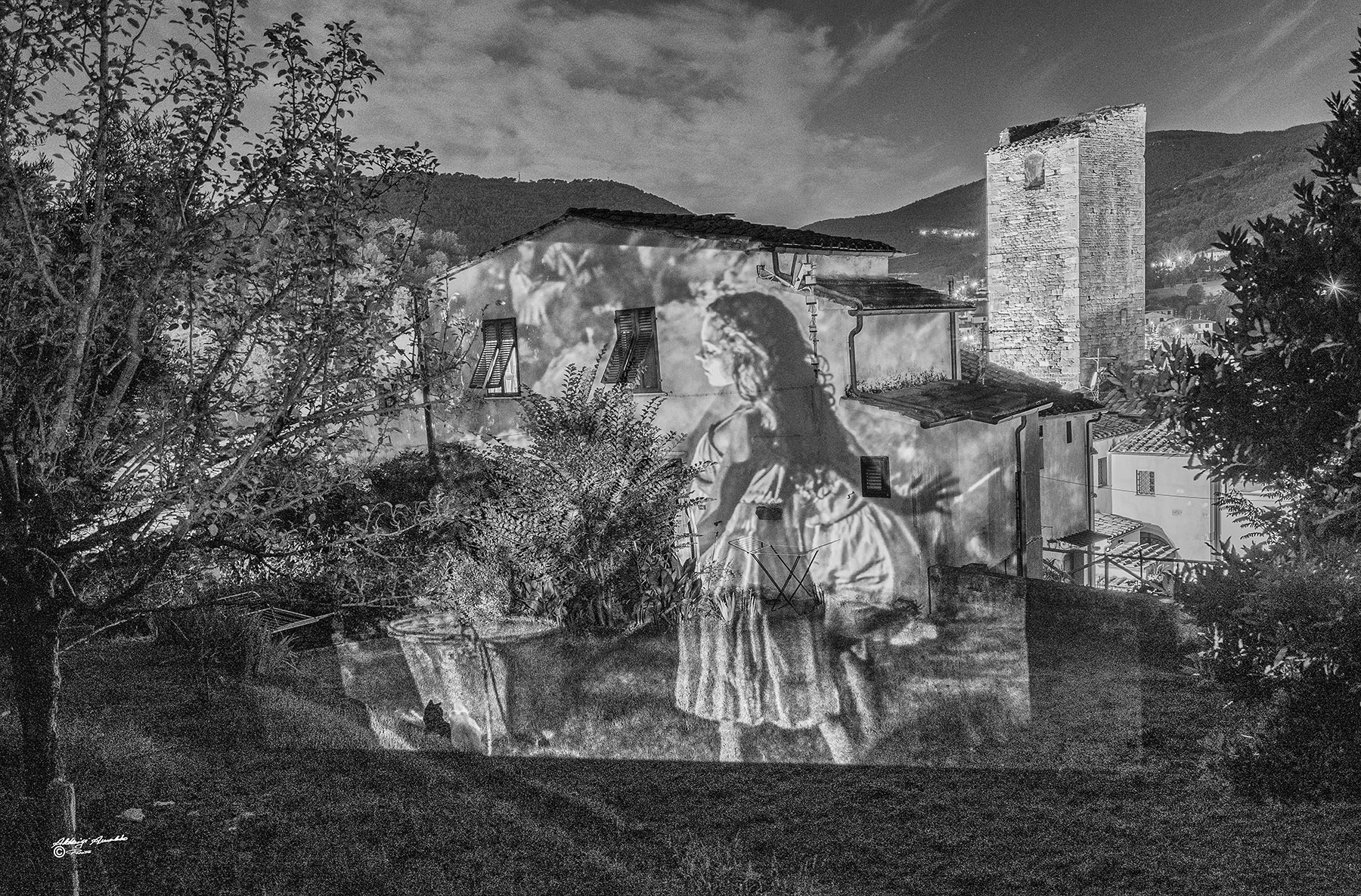 Questo ed altri scatti sono stati fatti assieme al mio fotoclub Vicopisano come esperimenti riproducendo immagini sui muri relativi alla festa medievale di Settembre che si svolge ogni anno di cui ricorreva il 25° anno..