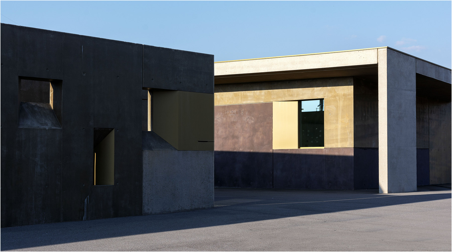 Un gioco di linee e volumi molto ben equilibrato; belli i colori polverosi e le lame di luce sull’edificio di sx.