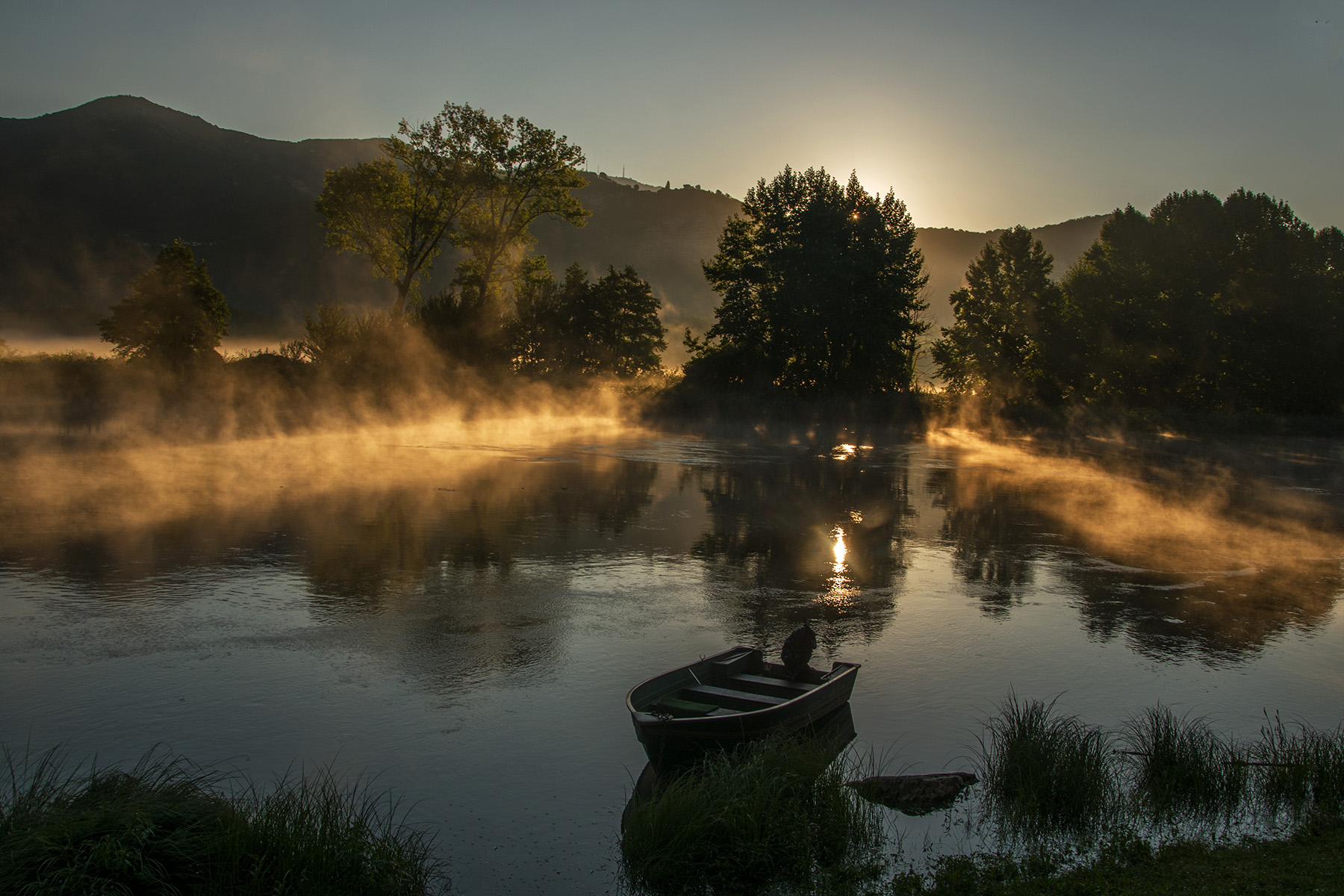Se solo la barchetta fosse stata girata dall'altra parte... è la prima cosa che ho pensato. Un invito a traghettare verso il cono di luce che si forma attorno all'albero che fa da separatore tra il regno dell'ombra e quello della luce. La favola e la magia che esprime quel vapore acqueo che si solleva dall'acqua è affascinante. Tutto sembra coinvolgerci non solo emotivamente ma anche direzionalmente. Grande scatto Ciao