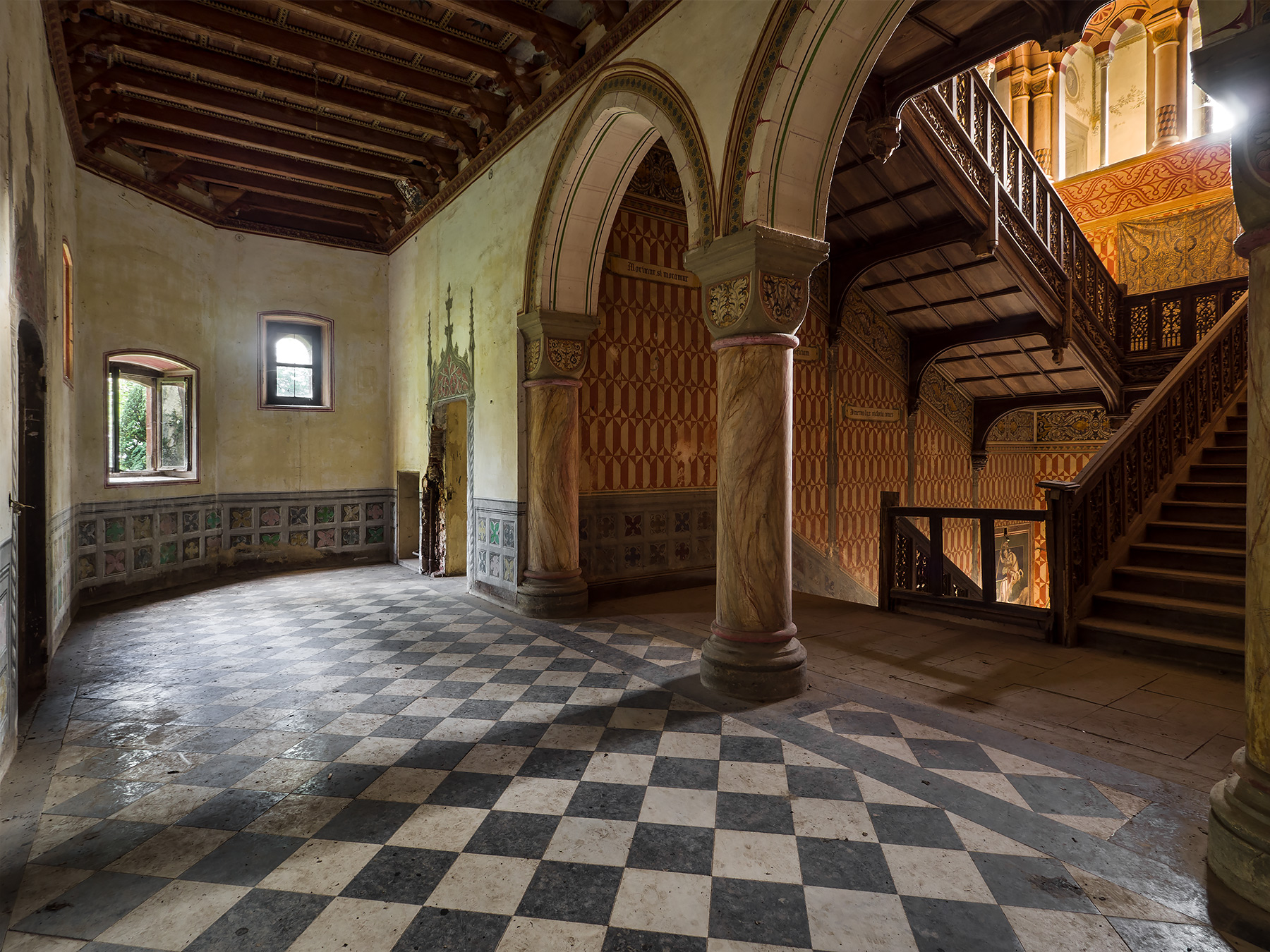 Bellissima. Perfettamente incorniciata tra gli elementi architetturali senza sacrificare o espandere oltre modo la scena, tra muro, porta e colonna. Si intravede lo sviluppo della scalinata che sale e che scende, l'arco e la fine del corridoio tutto con una precisione maniacale. Luce gestita squisitamente  _________________ - Fotografo della domenica |