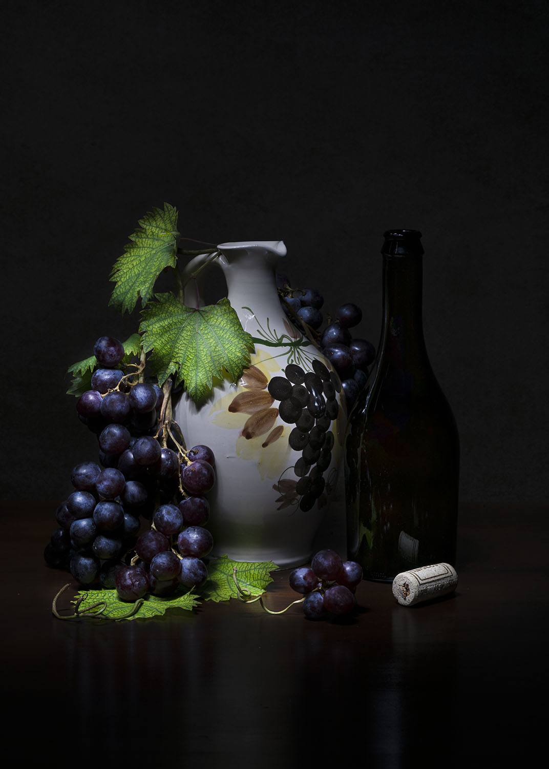 | Buona anche questa (sto guardando tutti i tuoi lavori still life). Qui però a mio modesto parere la bottiglia sulla destra soffre un po' .... una leggera pennellatina con la torcia forse se la meritava! |
