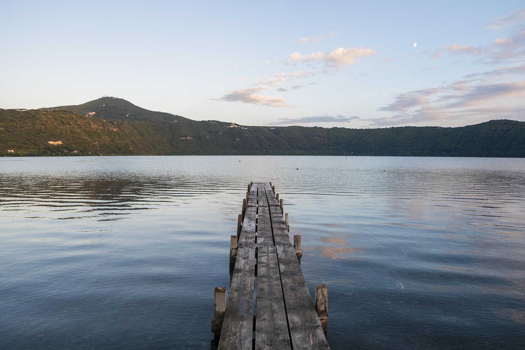 Ben composta, il pontile ci proietta verso la riva opposta. Belli i colori delicati.
