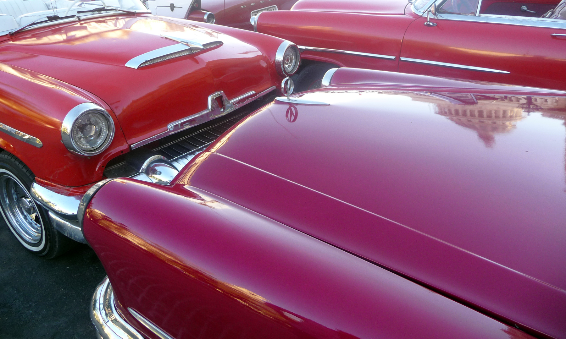 Un bell'accostamento di colori e macchine..molto piacevole il riflesso della cupola sul cofano.
