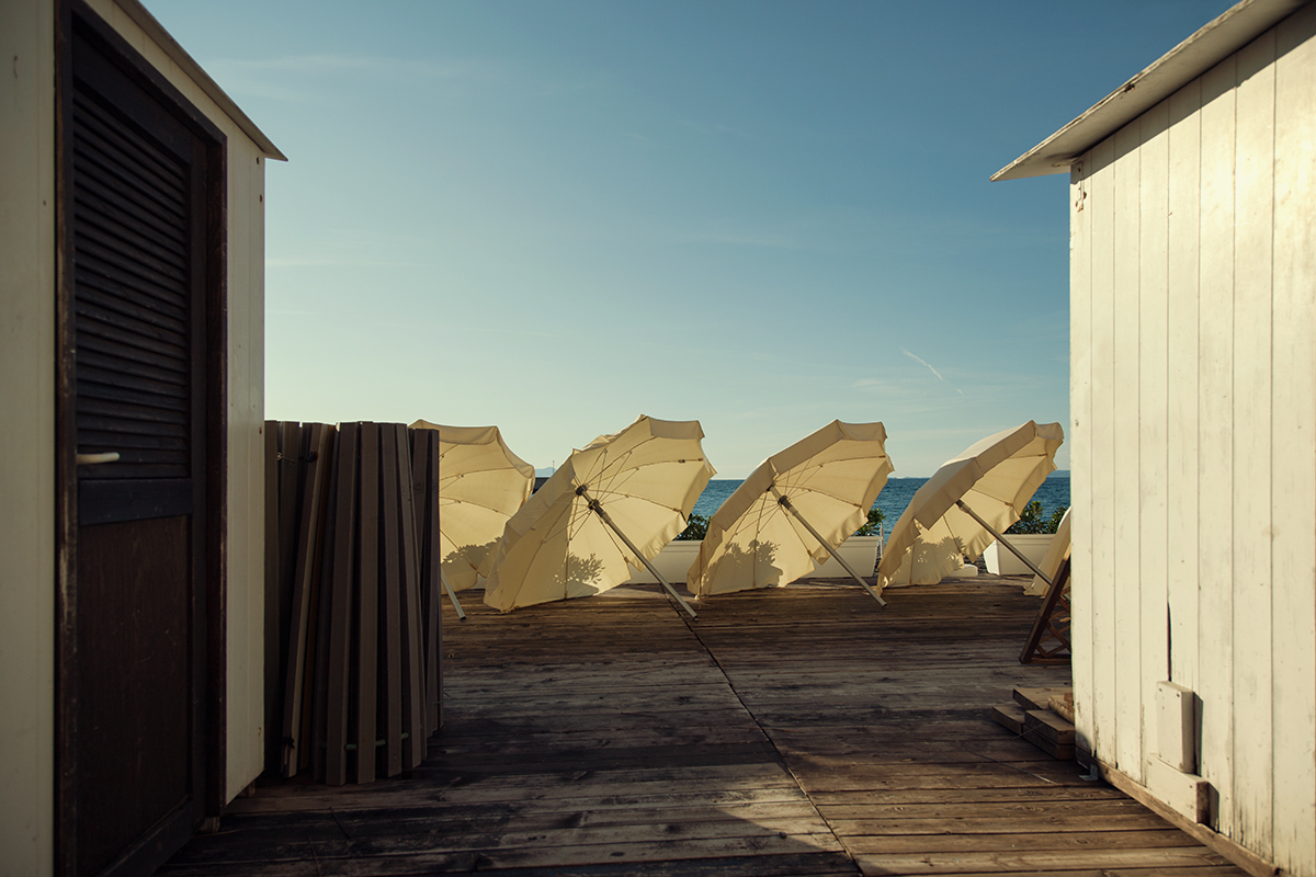 Toni caldi, orizzonte in bolla, ombrelloni in ordine, bella occupazione del frame...e la foto è fatta!
