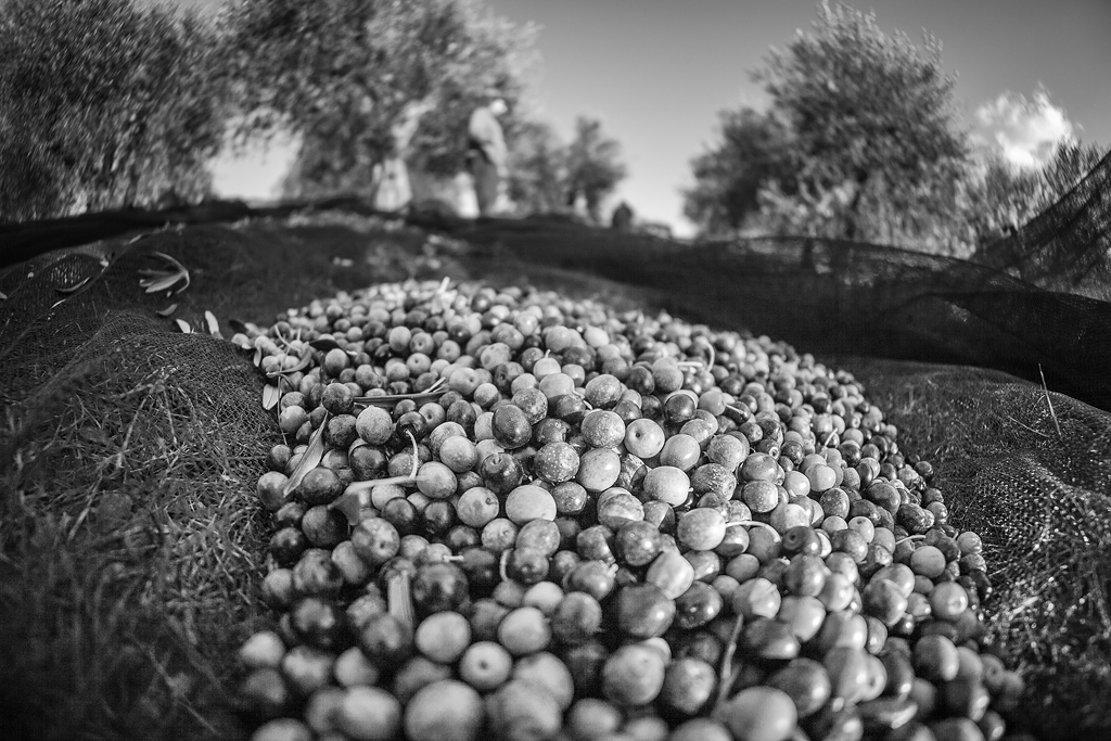 L'immagine a colori rende meglio lo stacco tra il soggetto (le olive) e tutto il contesto circostante grazie anche ad una bella luce che le illumina.