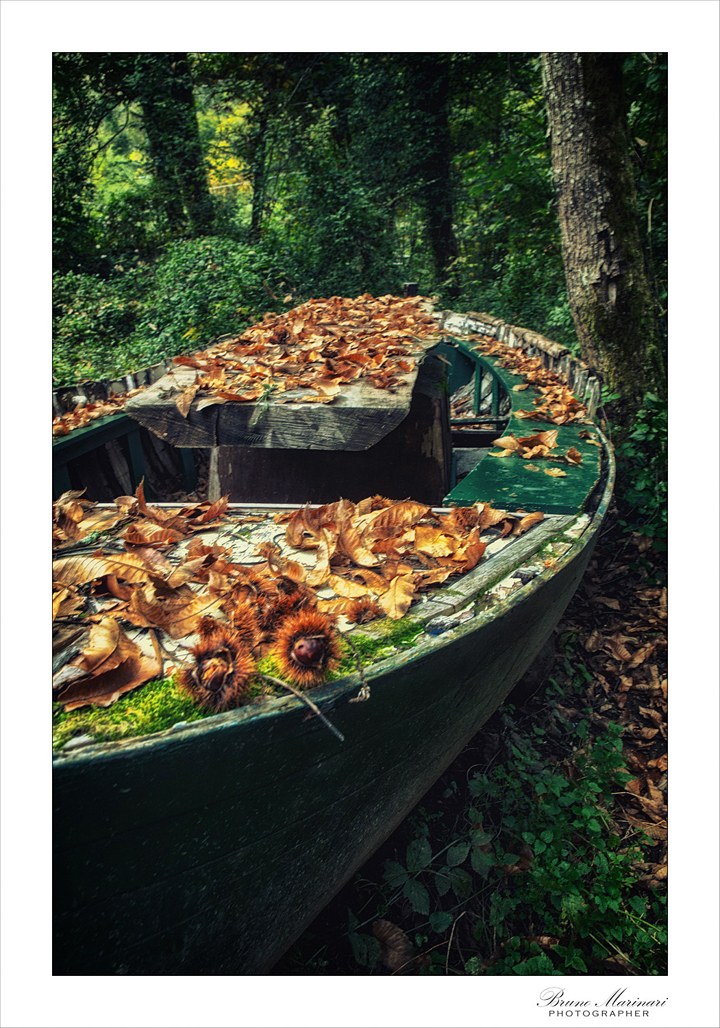 Un bel particolare questa barca in secco ricoperta di castagne e ricci.