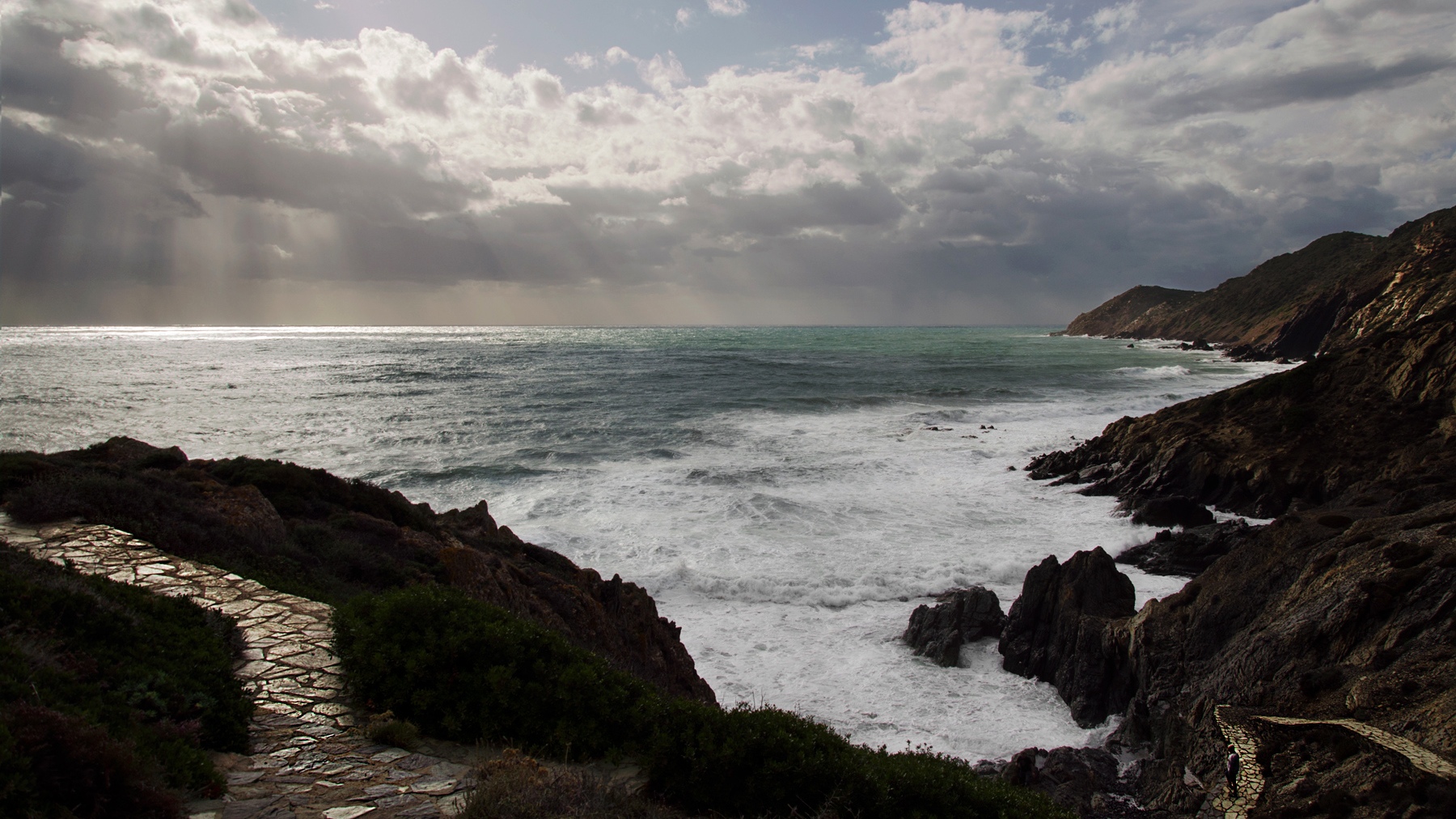 La maestosità del mare contemplata da un promontorio su un percorso lastricato che coinvolge. Mi piace