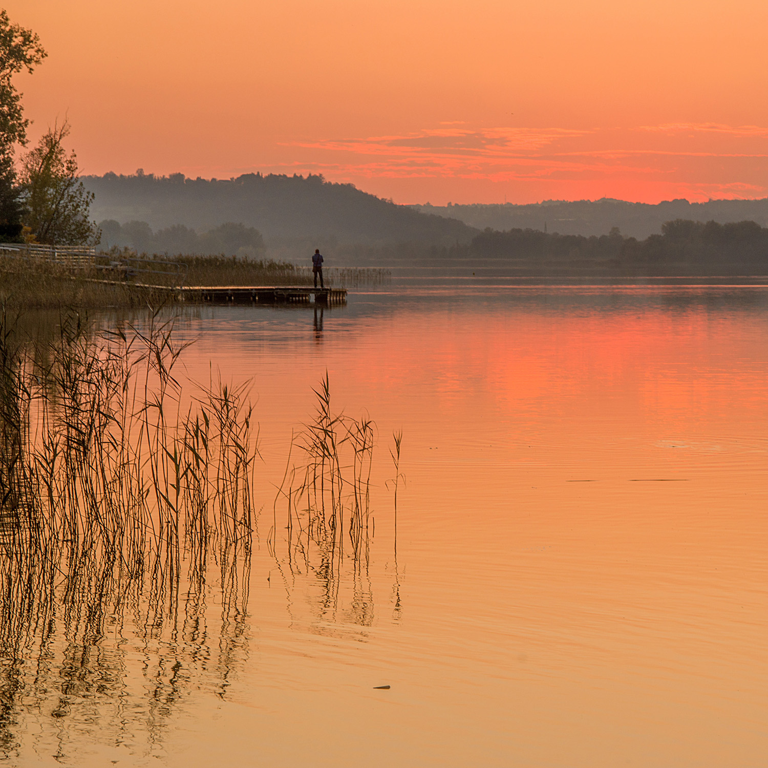 Il paesaggio quadro mi colpisce sempre molto e l'hai ben realizzato in quest'alba (azzardo ma i colori mi portano a pensarlo) aranciata. Solo per chiaccherare avrei quasi sacrificato una strisciolina di alberi a sinistra . Ciao Elis buona serata